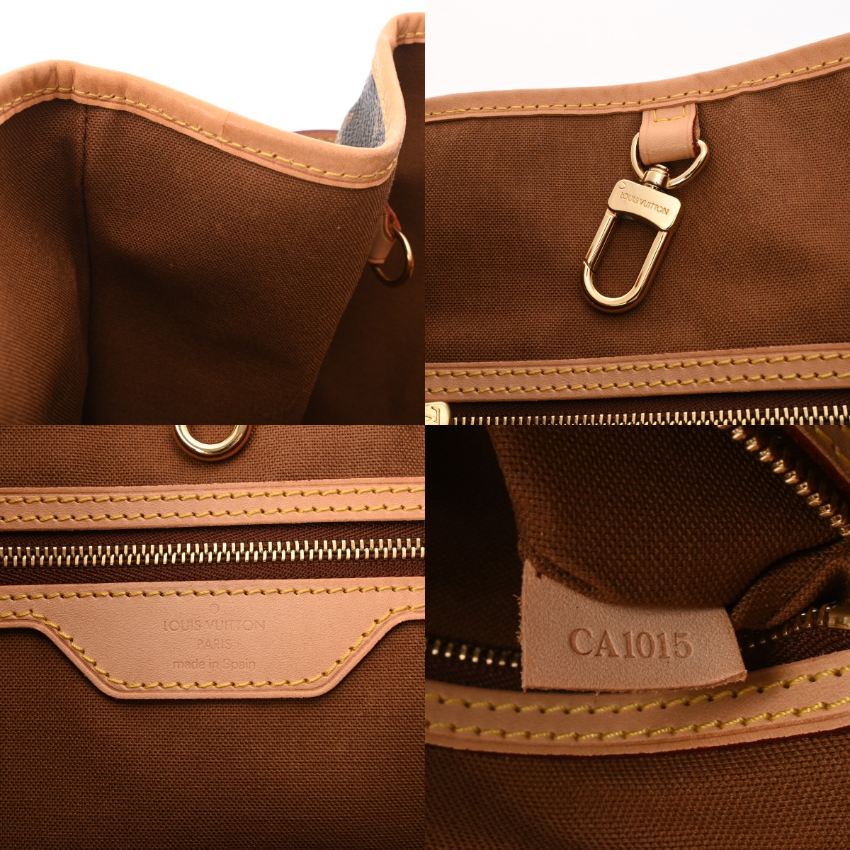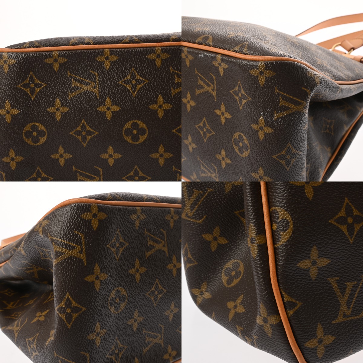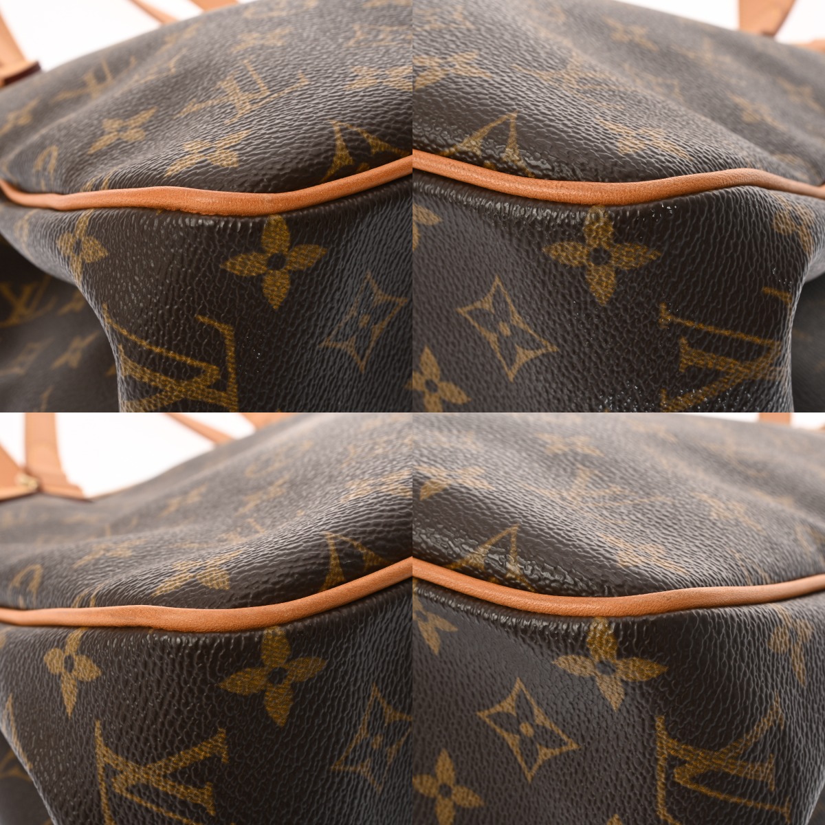 - たたみクセ、テカリ、汚れ、スレ、持ち手にクセやシワ、ヌメ革に少しヤケ、金具にくすみなど少々使用感がございます。