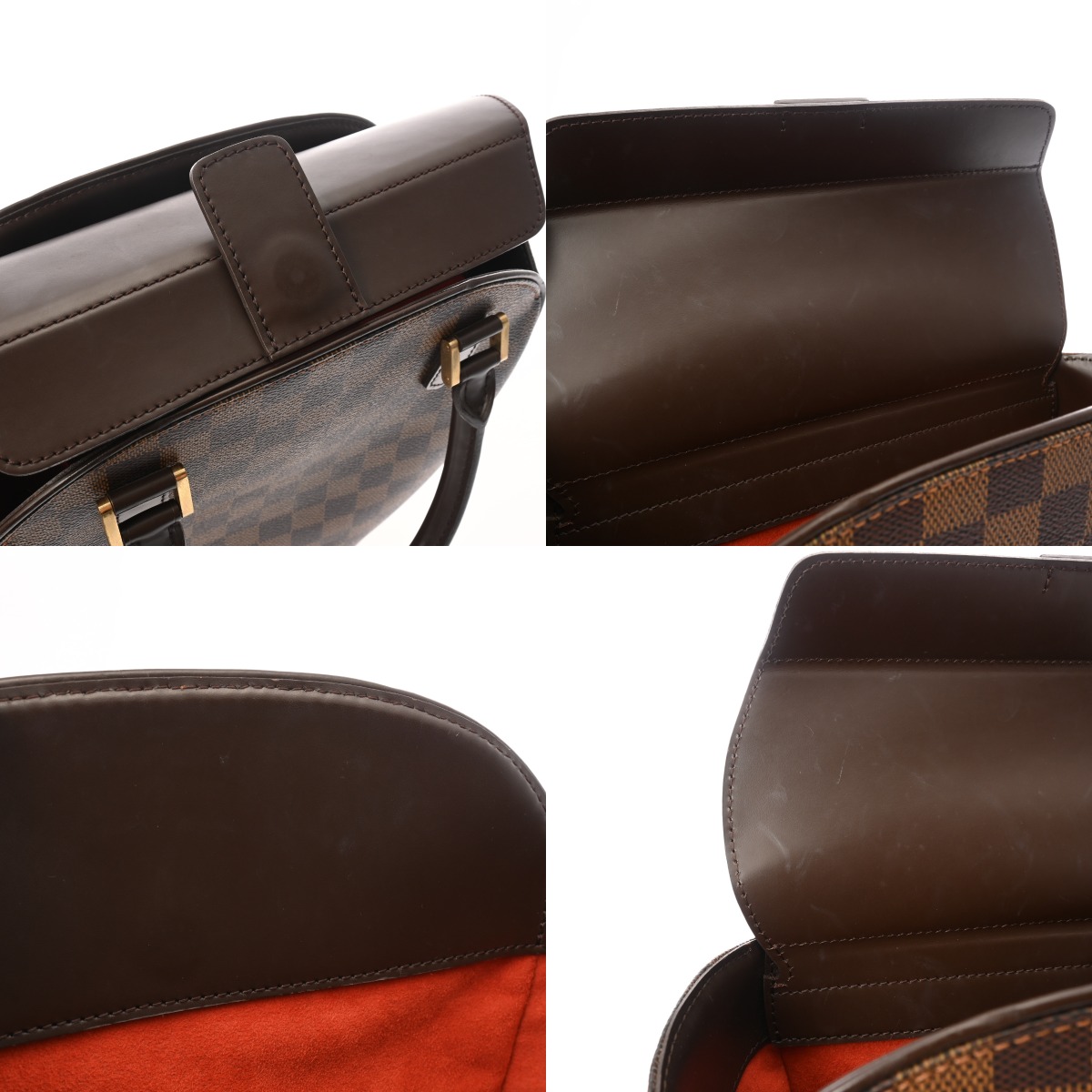 - 汚れやスレ、若干テカリ、持ち手部分含めコバにスレキズ、金具にくすみやスレがございます。