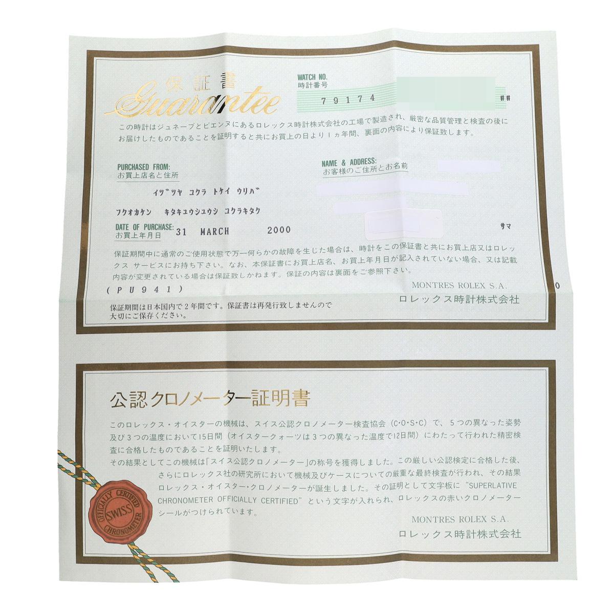 - 時計の当社保証
