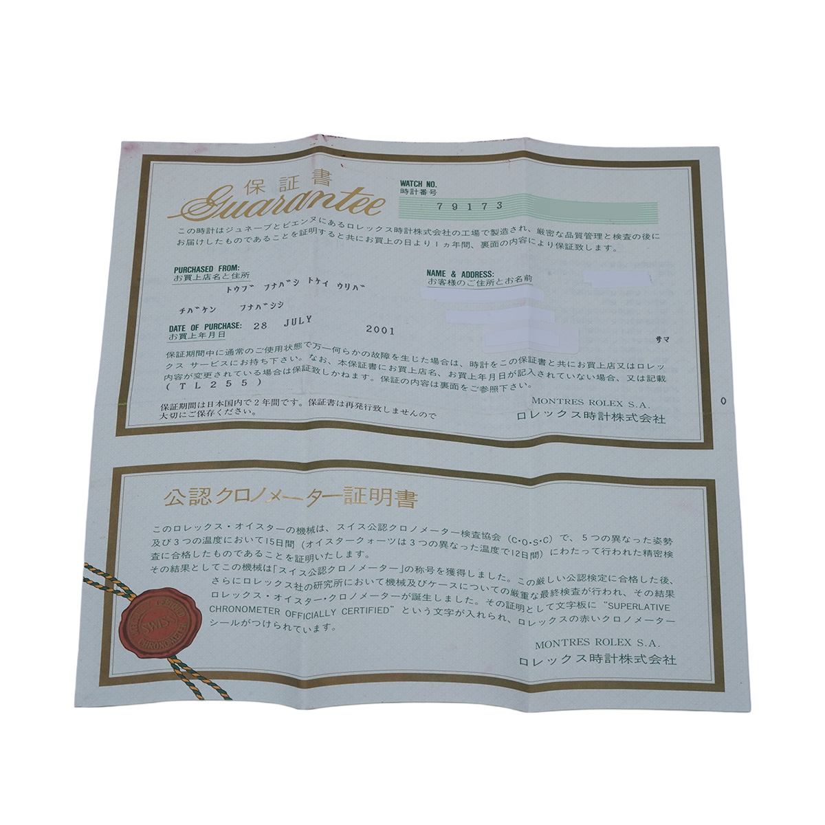 - メーカー保証書( 2001年7月国内購入) / 内箱(ダメージ)