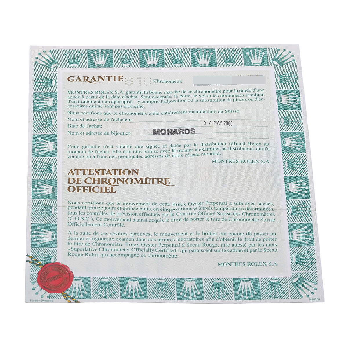- 時計の当社保証