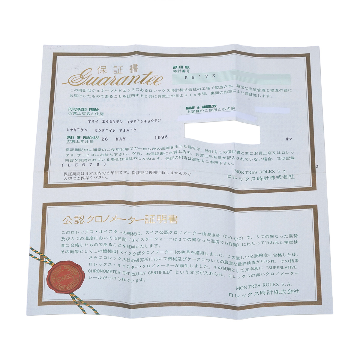 - メーカー保証書( 1998年5月国内購入(切り抜き有)) / メーカー箱(ダメージ)/冊子