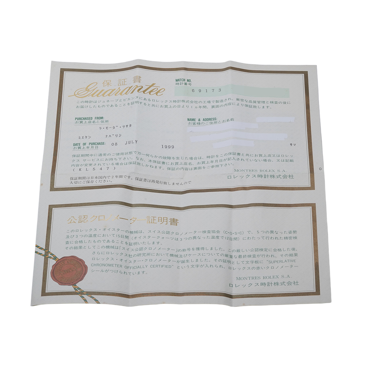 - 時計の当社保証