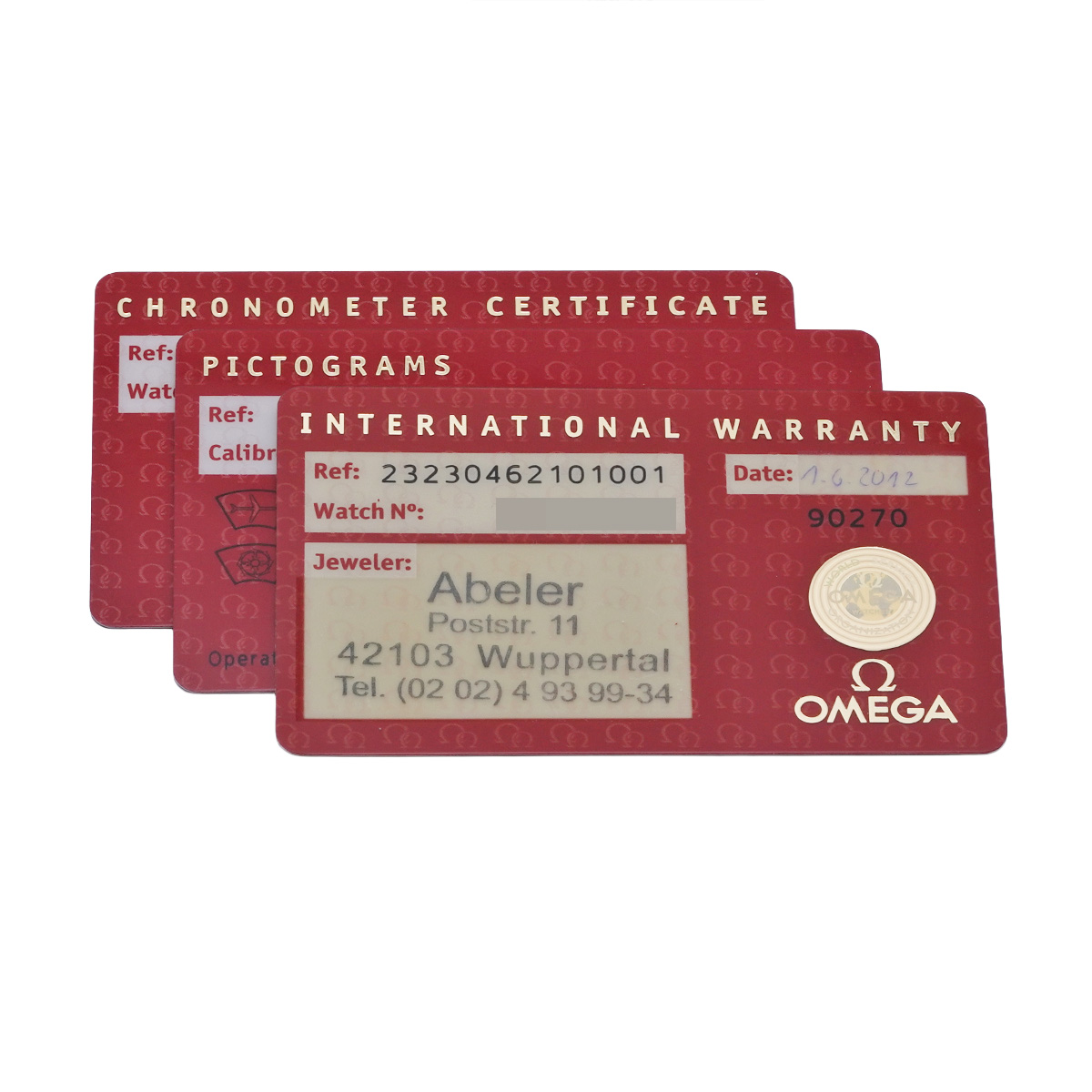 - メーカー保証書( 2012年6月海外購入) / ピクトグラム/クロノメーター証明書