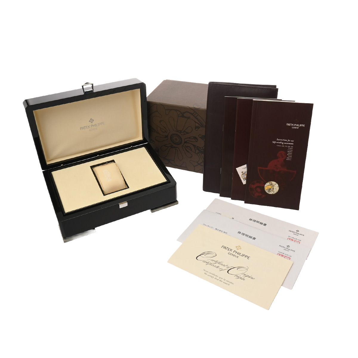 - メーカー保証書( 2006年12月国内購入) / メーカー箱(ダメージ)/冊子 / 修理明細書(2017年9月オーバーホール、2025年10月ストラップ交換)