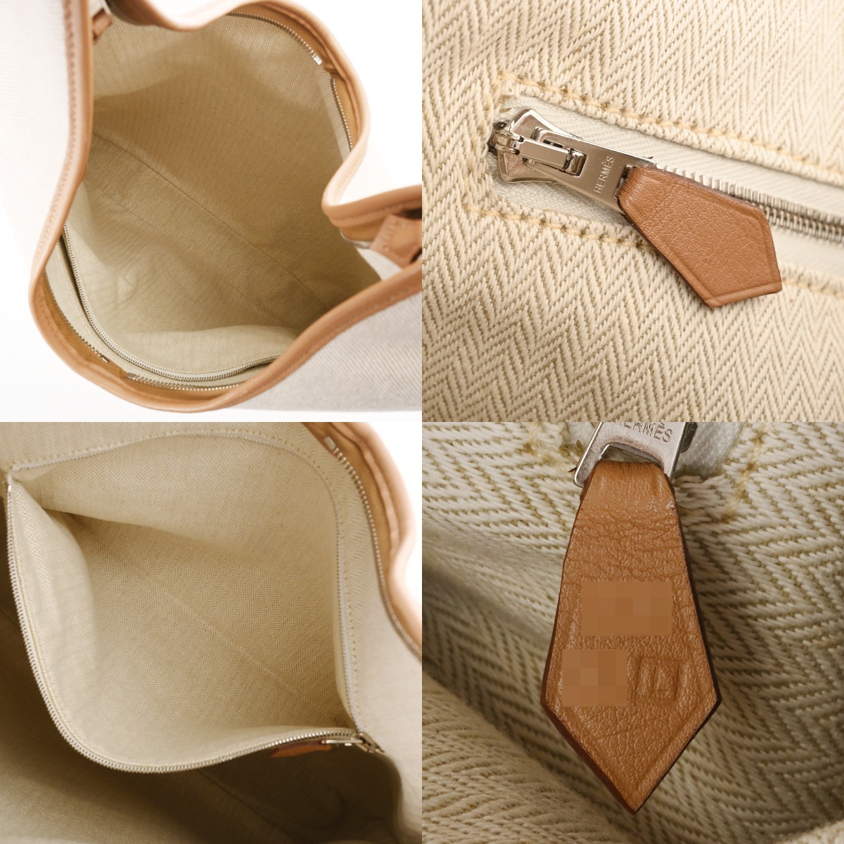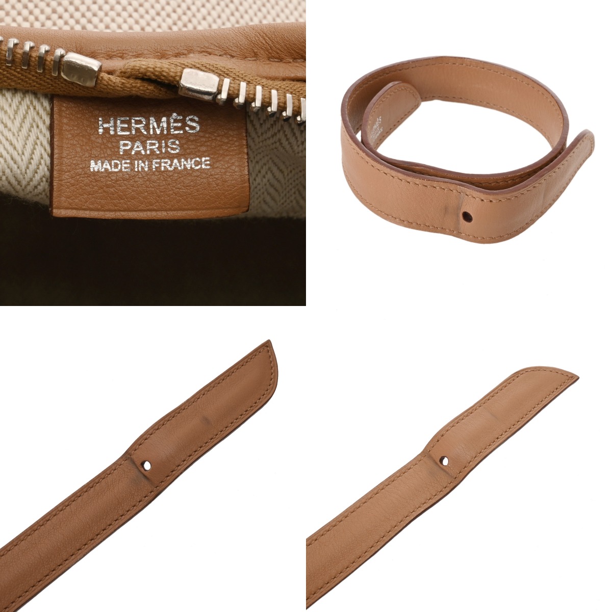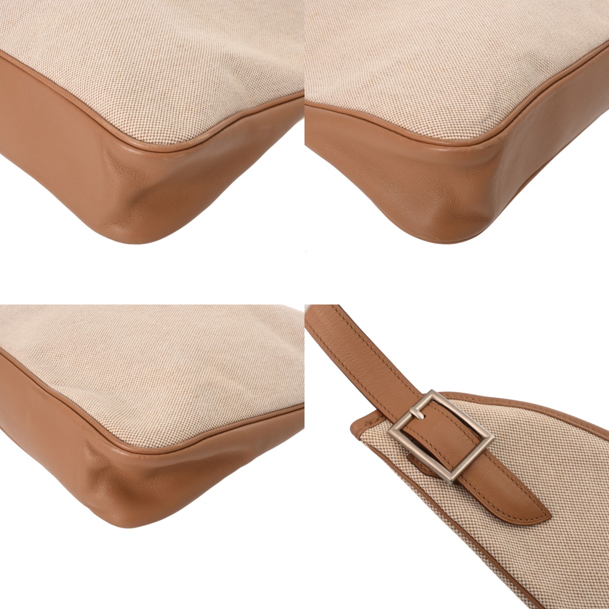 エルメス エクリュ/タバックキャメル トワルアッシュ/レザー レディース バッグ 【中古】【bag】