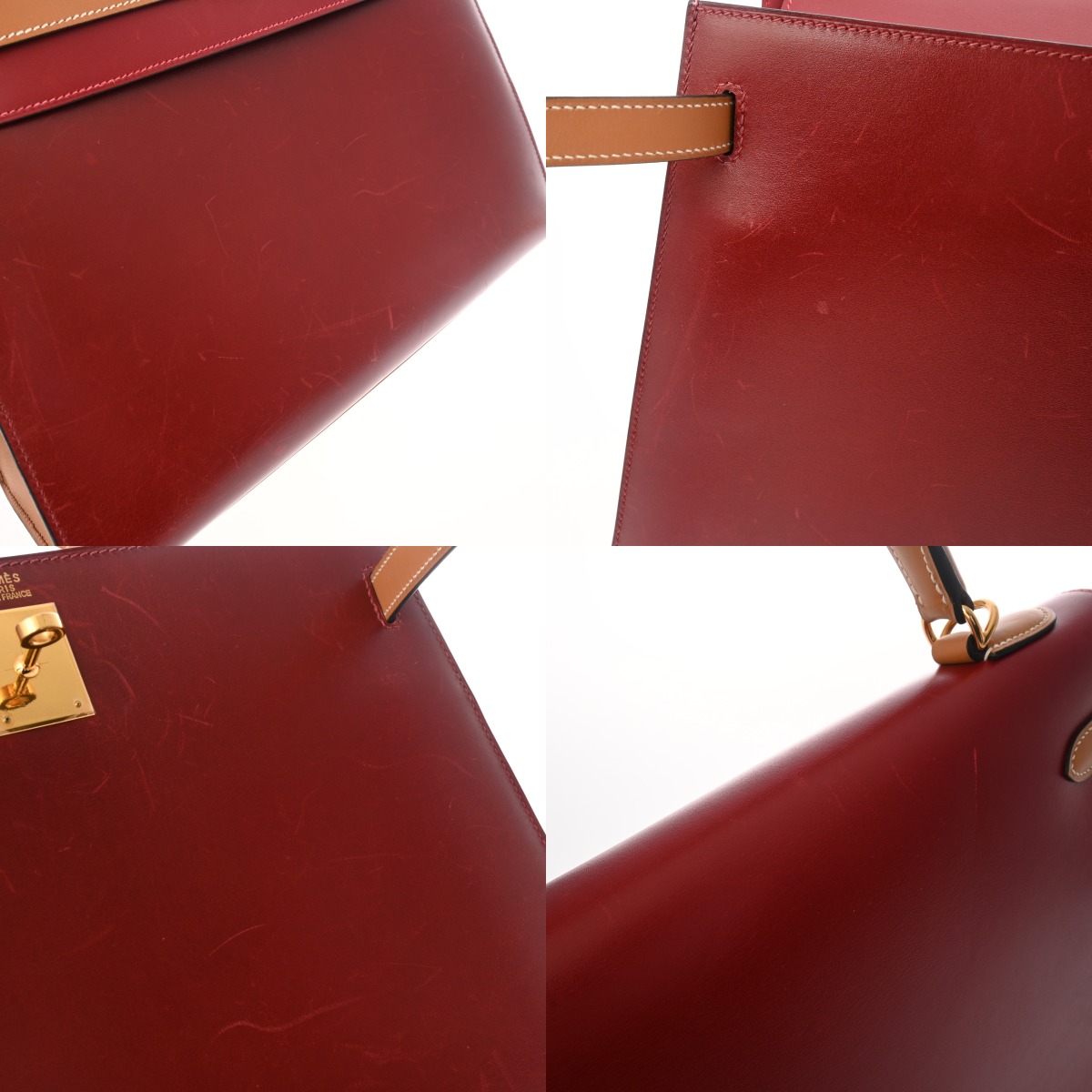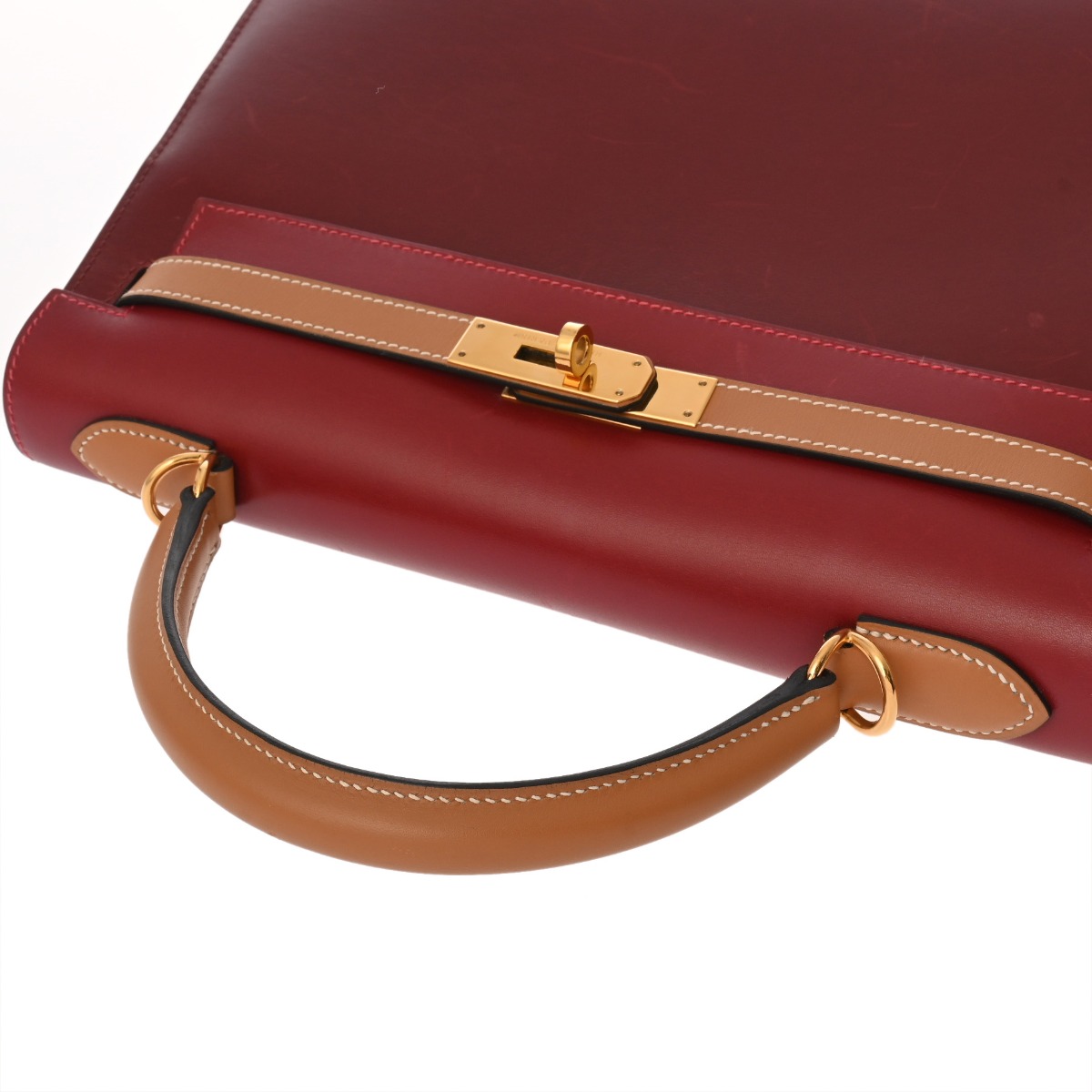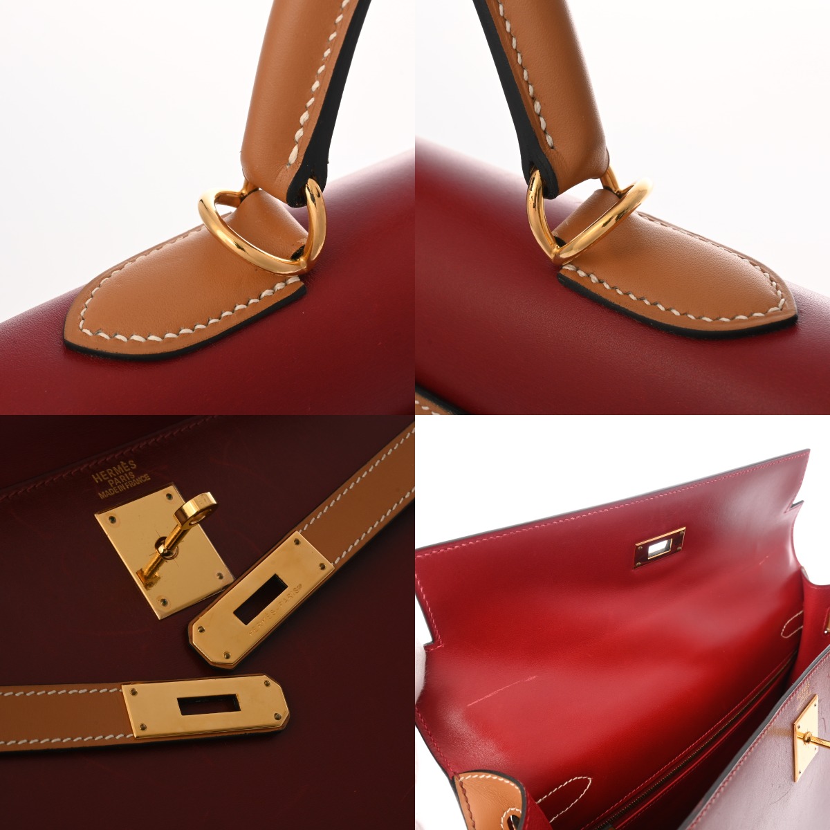 エルメス ケリー 32 外縫い ルージュヴィフ/ルージュアッシュ/ナチュラル ボックスカーフ レディース バッグ 【中古】【bag】