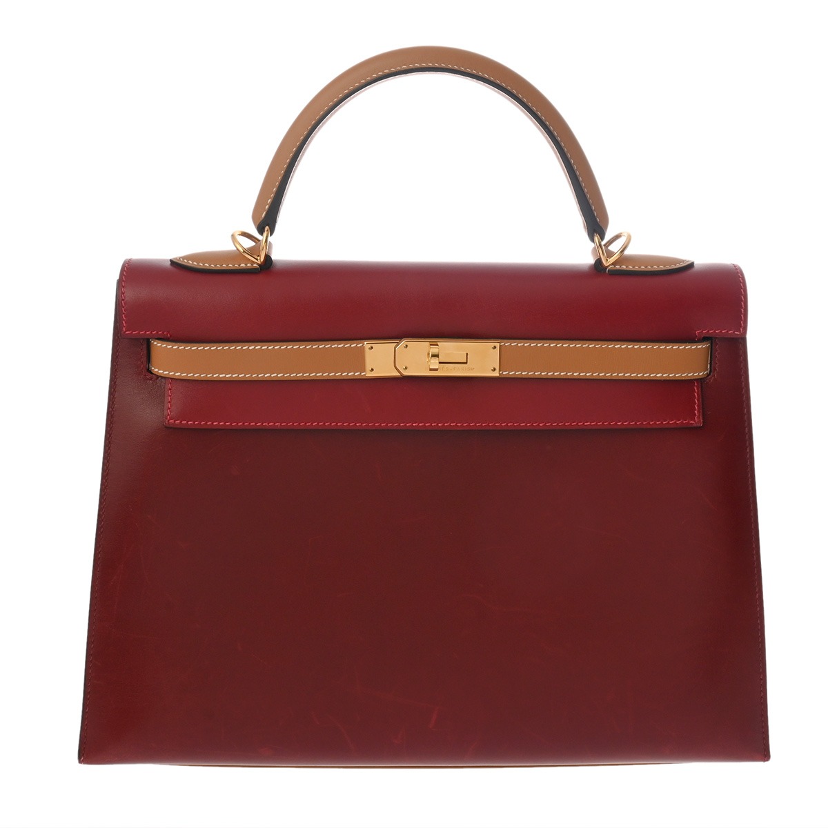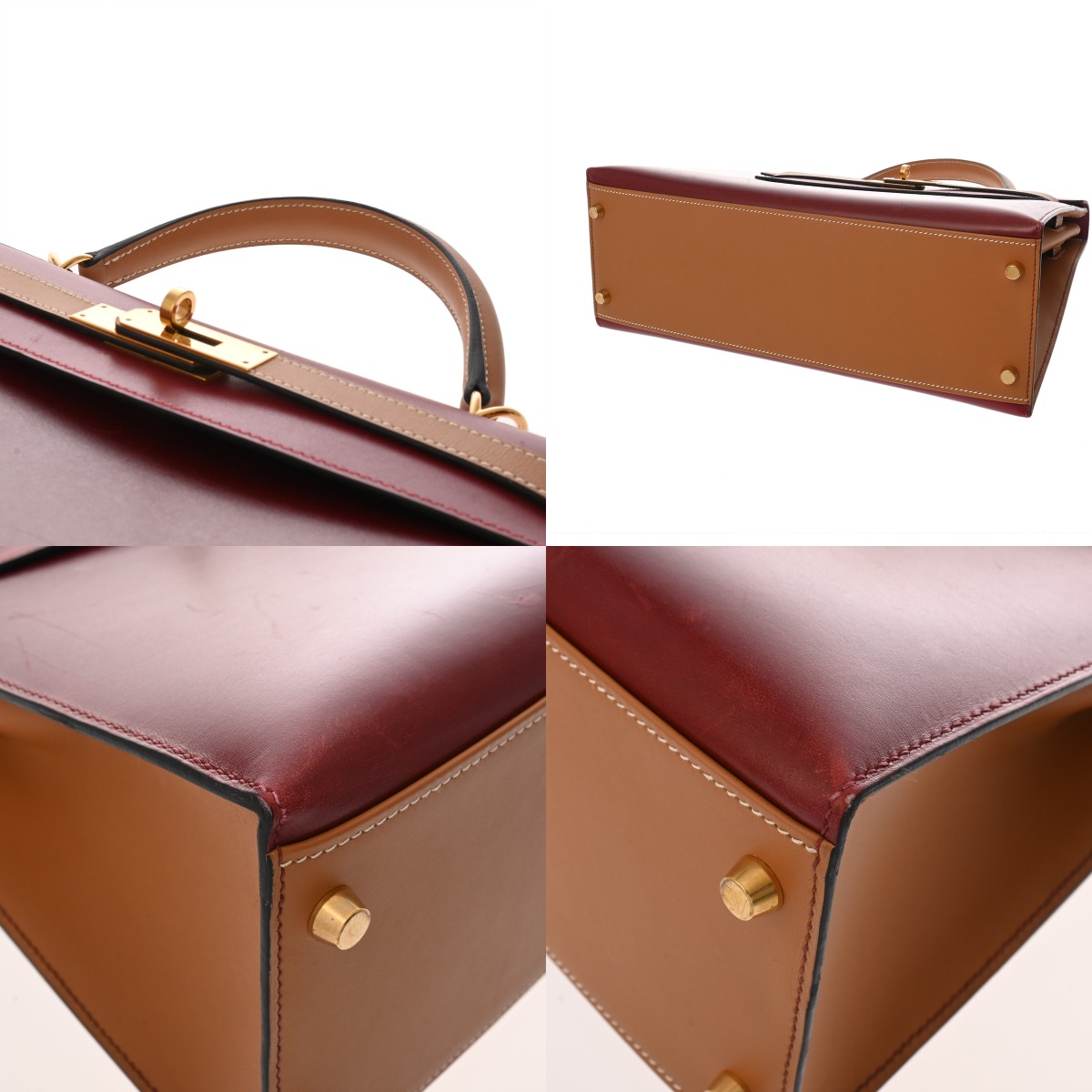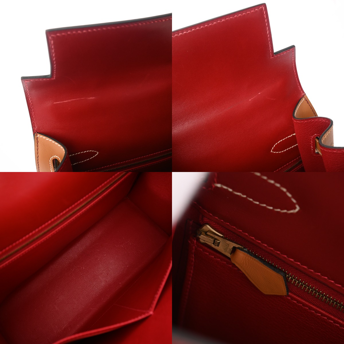 エルメス ケリー 32 外縫い ルージュヴィフ/ルージュアッシュ/ナチュラル ボックスカーフ レディース バッグ 【中古】【bag】