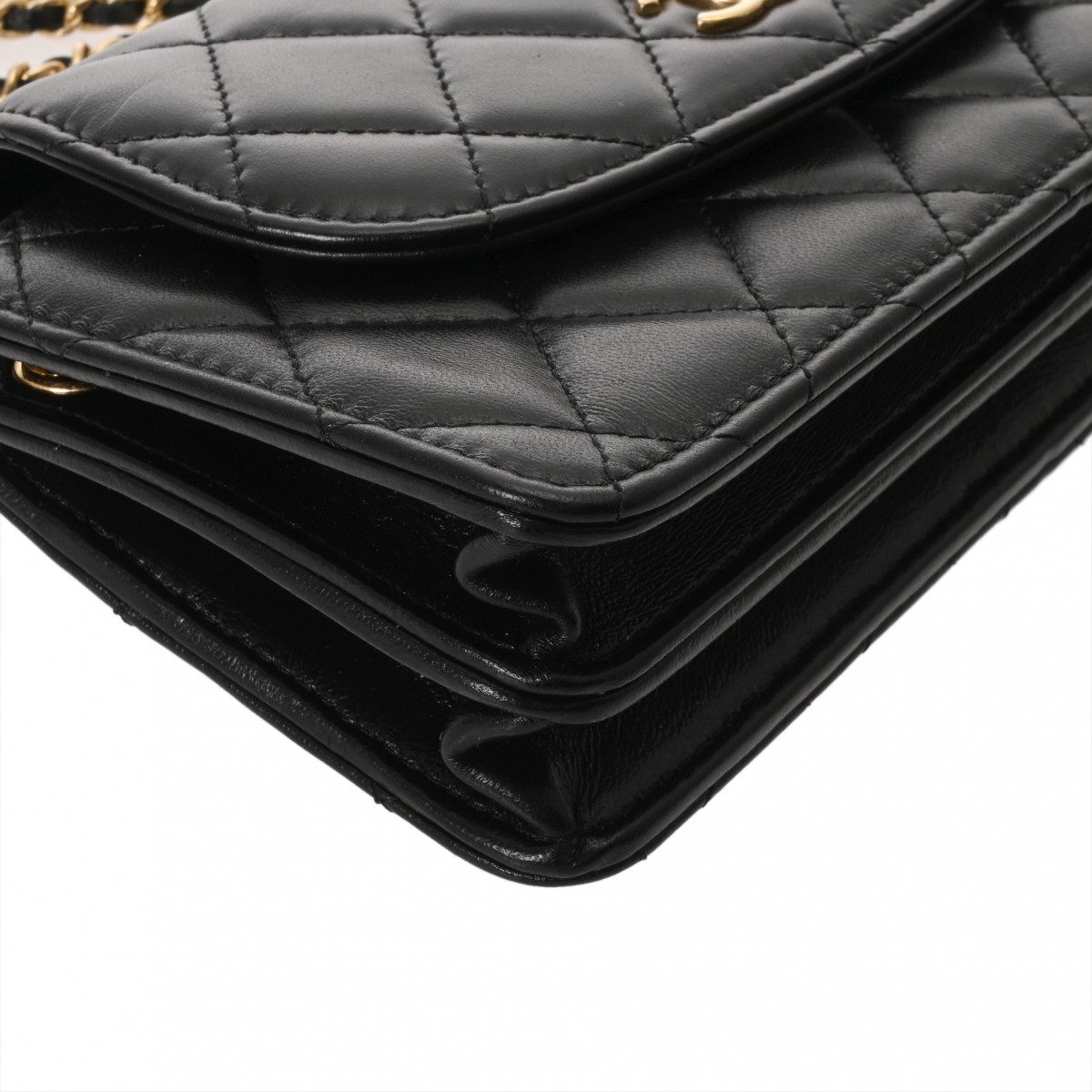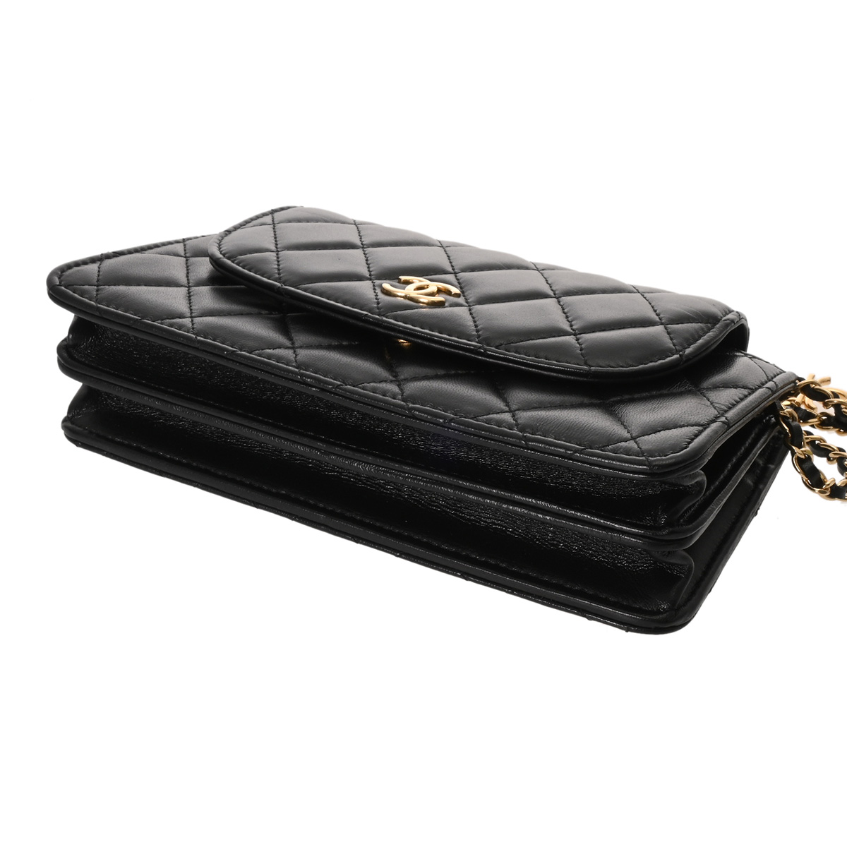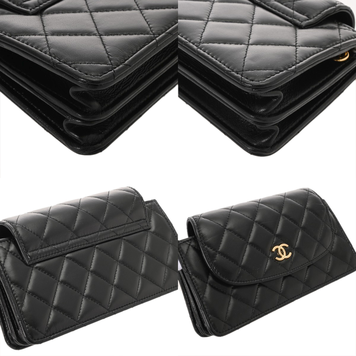 シャネル フラップフォンケース ブラック AP3003 シャイニーラムスキン レディース バッグ 【中古】【bag】