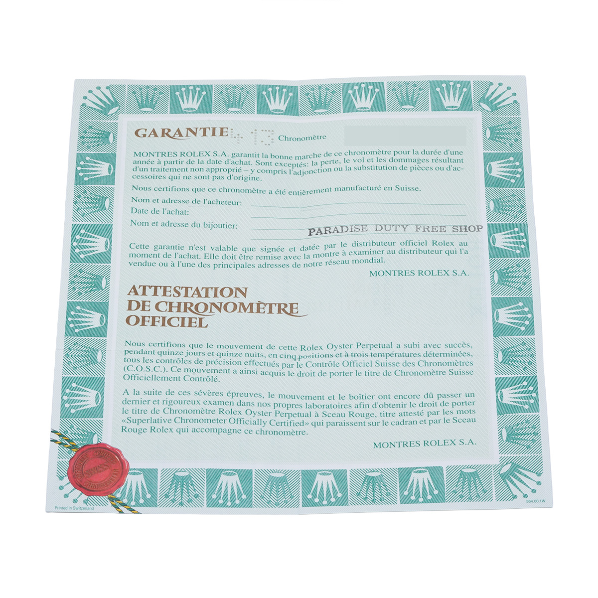 - 時計の当社保証