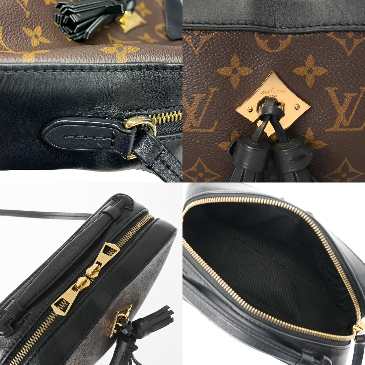 - つぶれ、テカリ、スレやシワ、ショルダーやタッセルにクセ、金具部分に色ハゲやくすみ、スリキズなど使用感がございます。