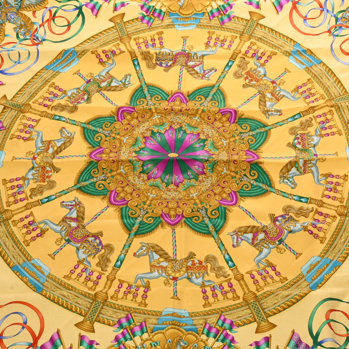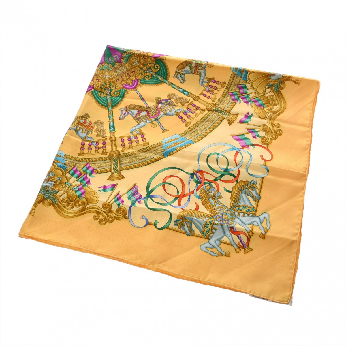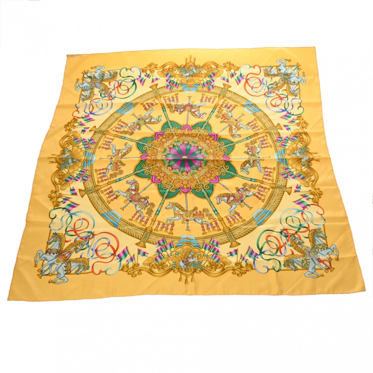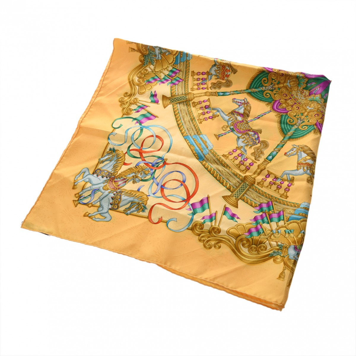 エルメス カレ 90 LUNA PARK イエロー系マルチカラー シルク100% レディース 【中古】【other】