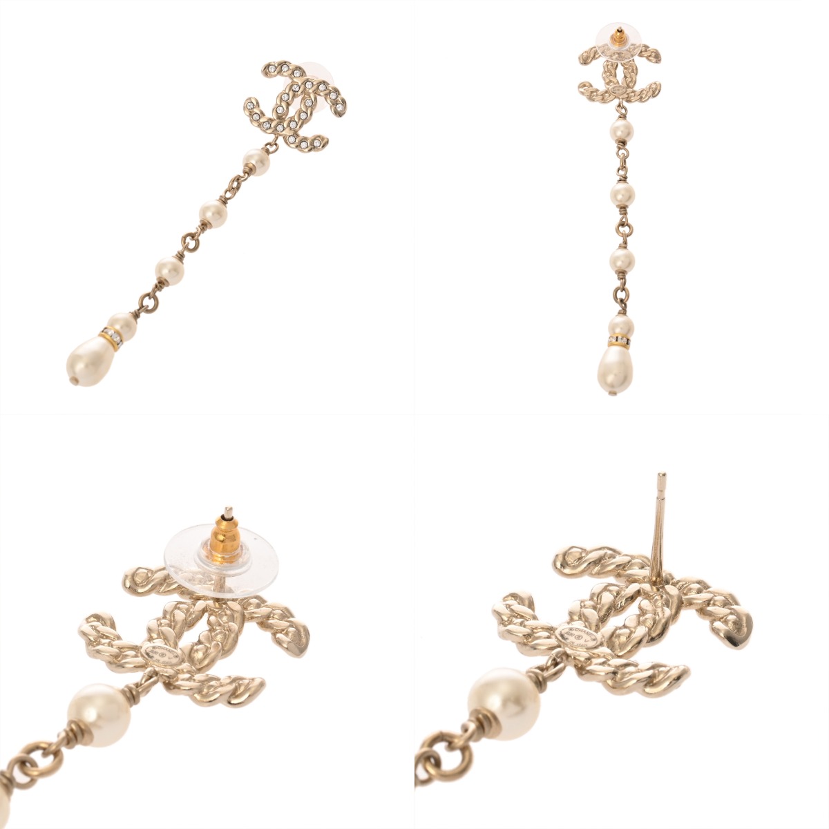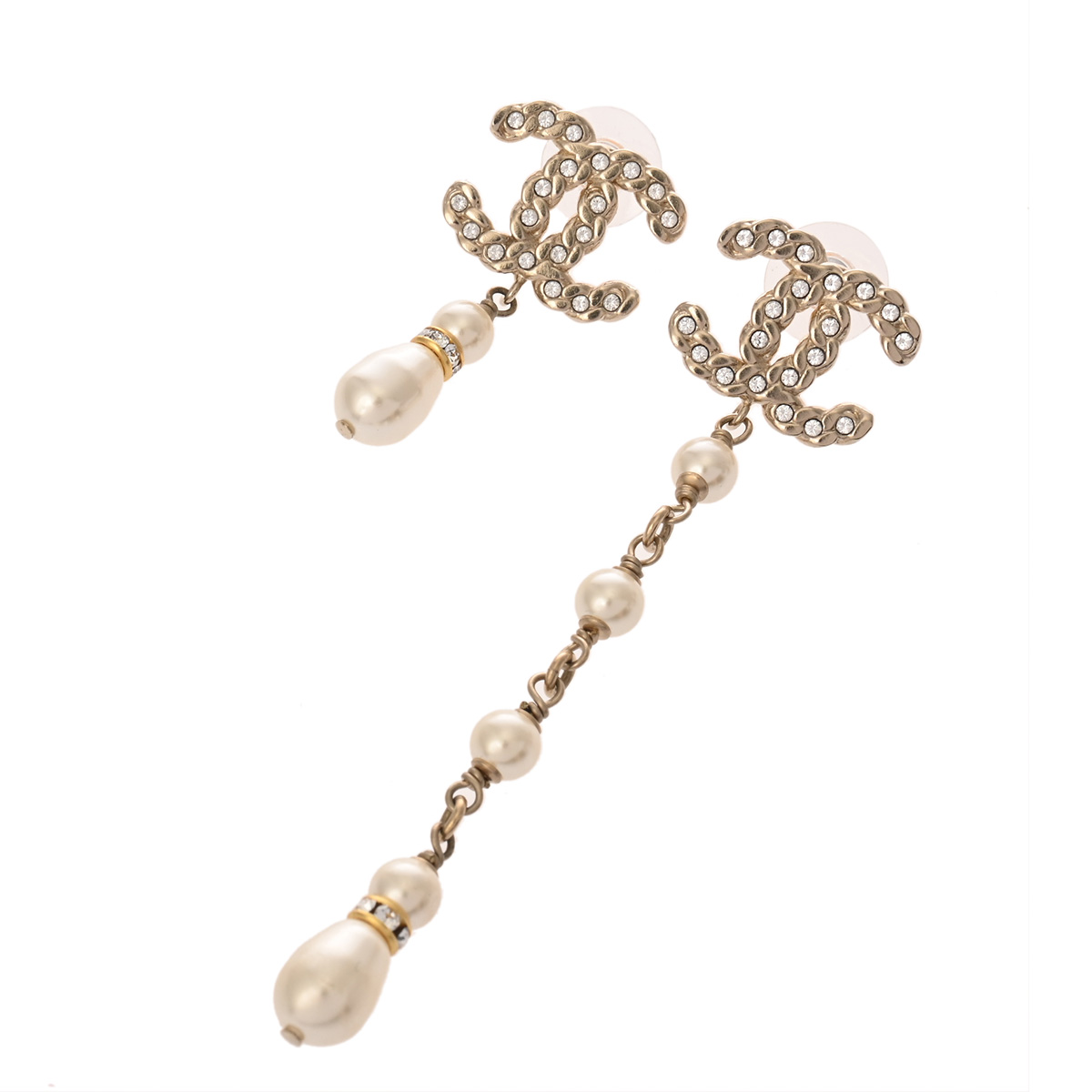 シャネル イヤリング ゴールド/ホワイト メタル/ストラス/コスチュームパール レディース ジュエリー 【中古】【jewelry】