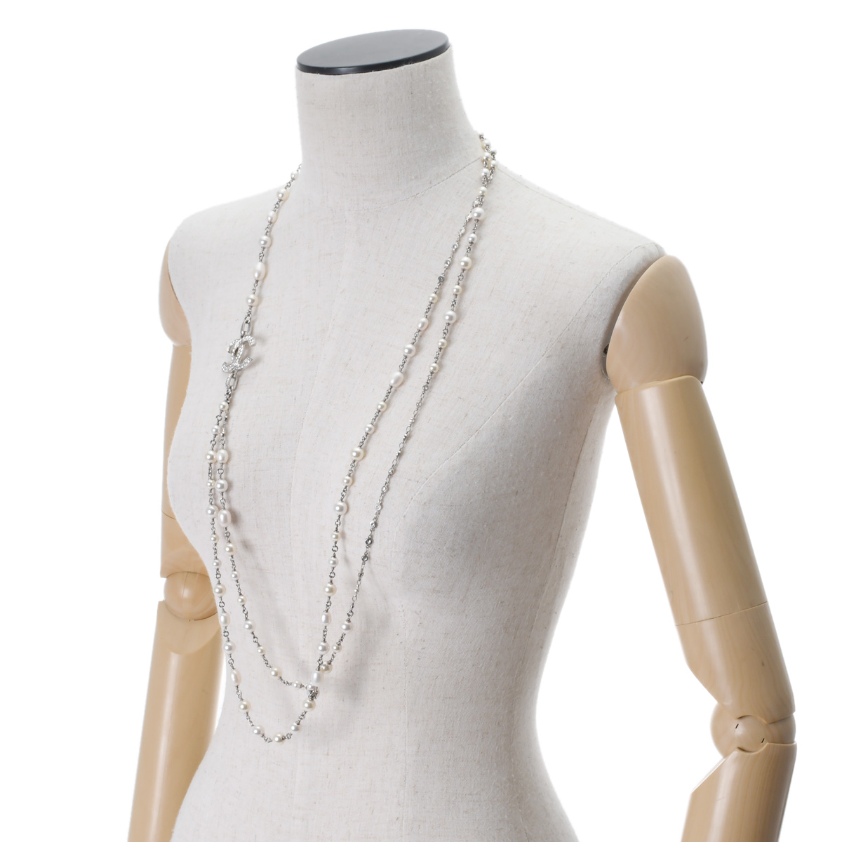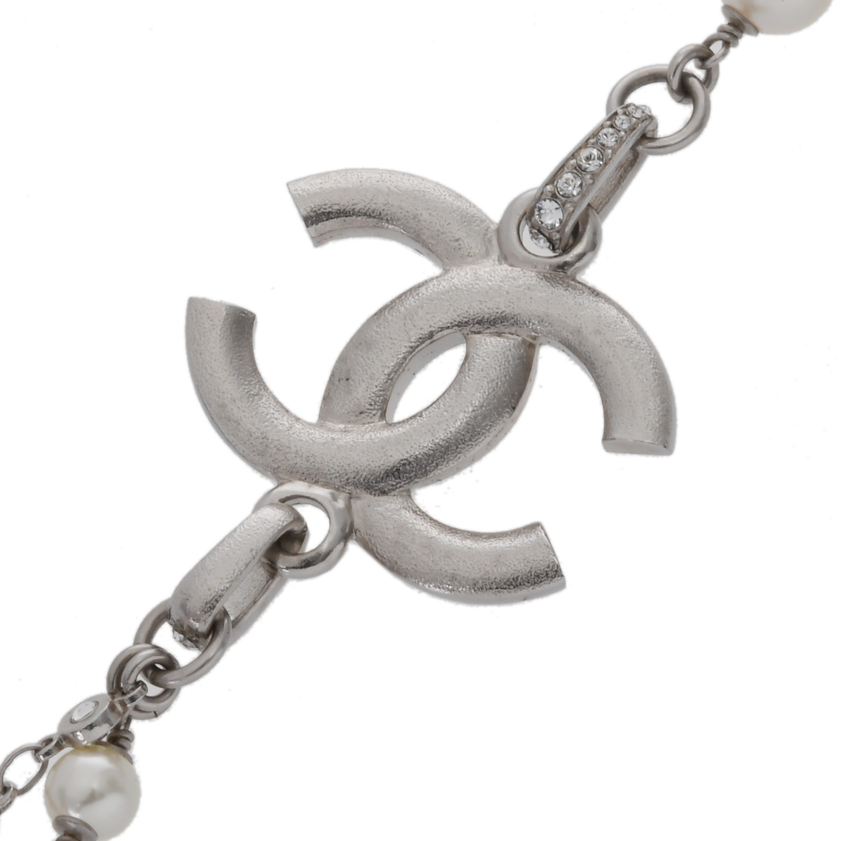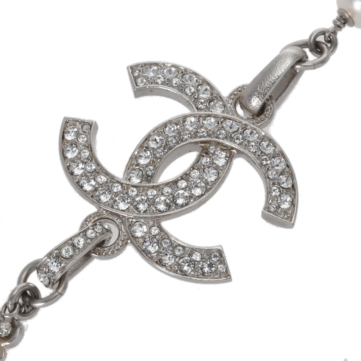 シャネル ロングネックレス シルバー/ホワイト メタル/ストラス/コスチュームパール レディース ジュエリー 【中古】【jewelry】