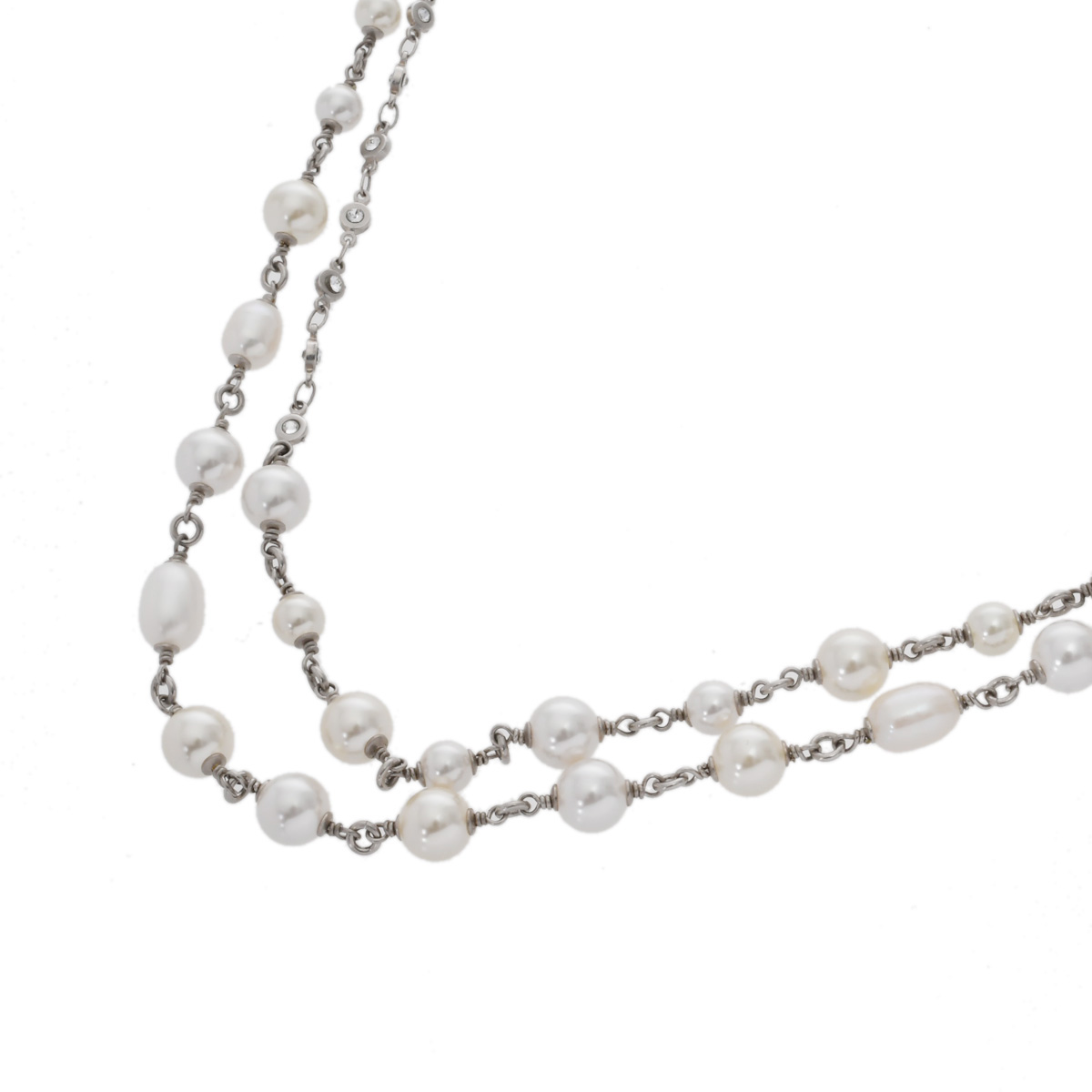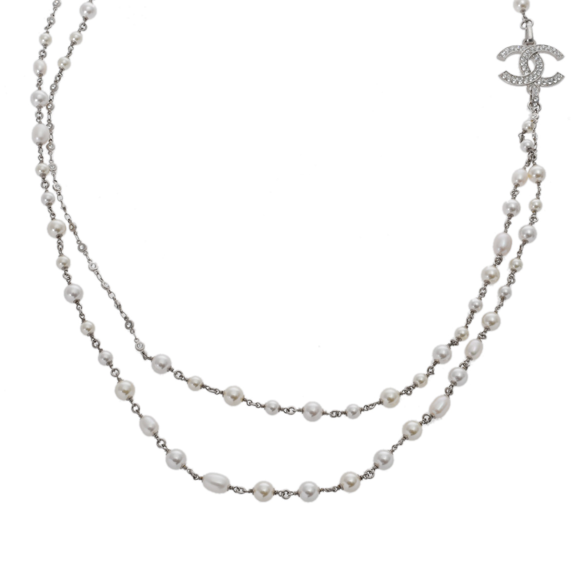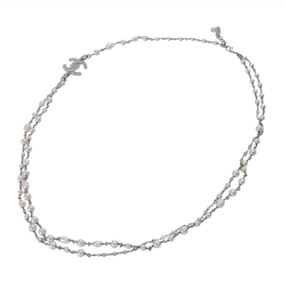 シャネル ロングネックレス シルバー/ホワイト メタル/ストラス/コスチュームパール レディース ジュエリー 【中古】【jewelry】