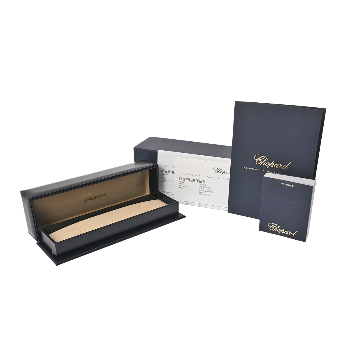 - メーカー保証書( 2024年5月購入) / メーカー箱(ダメージ)/冊子 / 修理明細兼保証書/納品書兼請求書(2025年10月ストラップ交換)