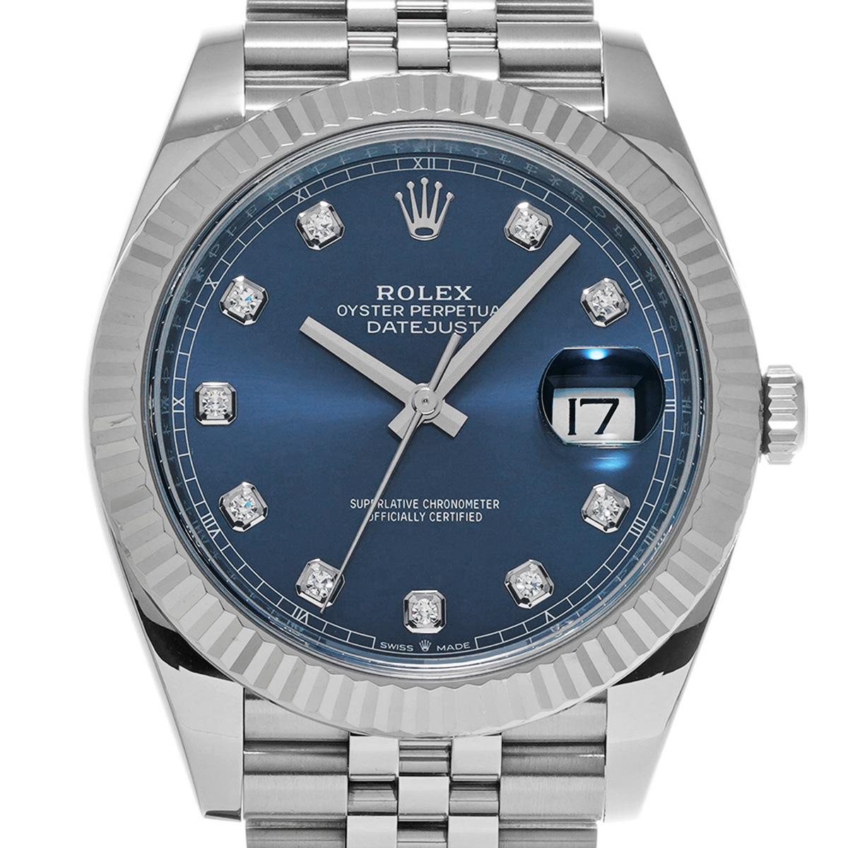 ロレックス デイトジャスト 41 126334G ブライトブルー/ダイヤモンド メンズ 時計 【中古】【wristwatch】