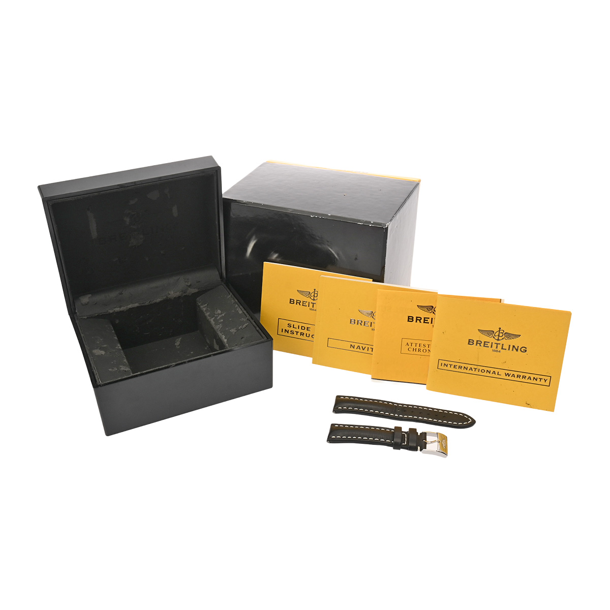 - メーカー保証書( 2007年5月国内購入) / 替えベルト( レザー/ブラック) / メーカー箱(ダメージ/枕欠品)/冊子/クロノメーター証明書