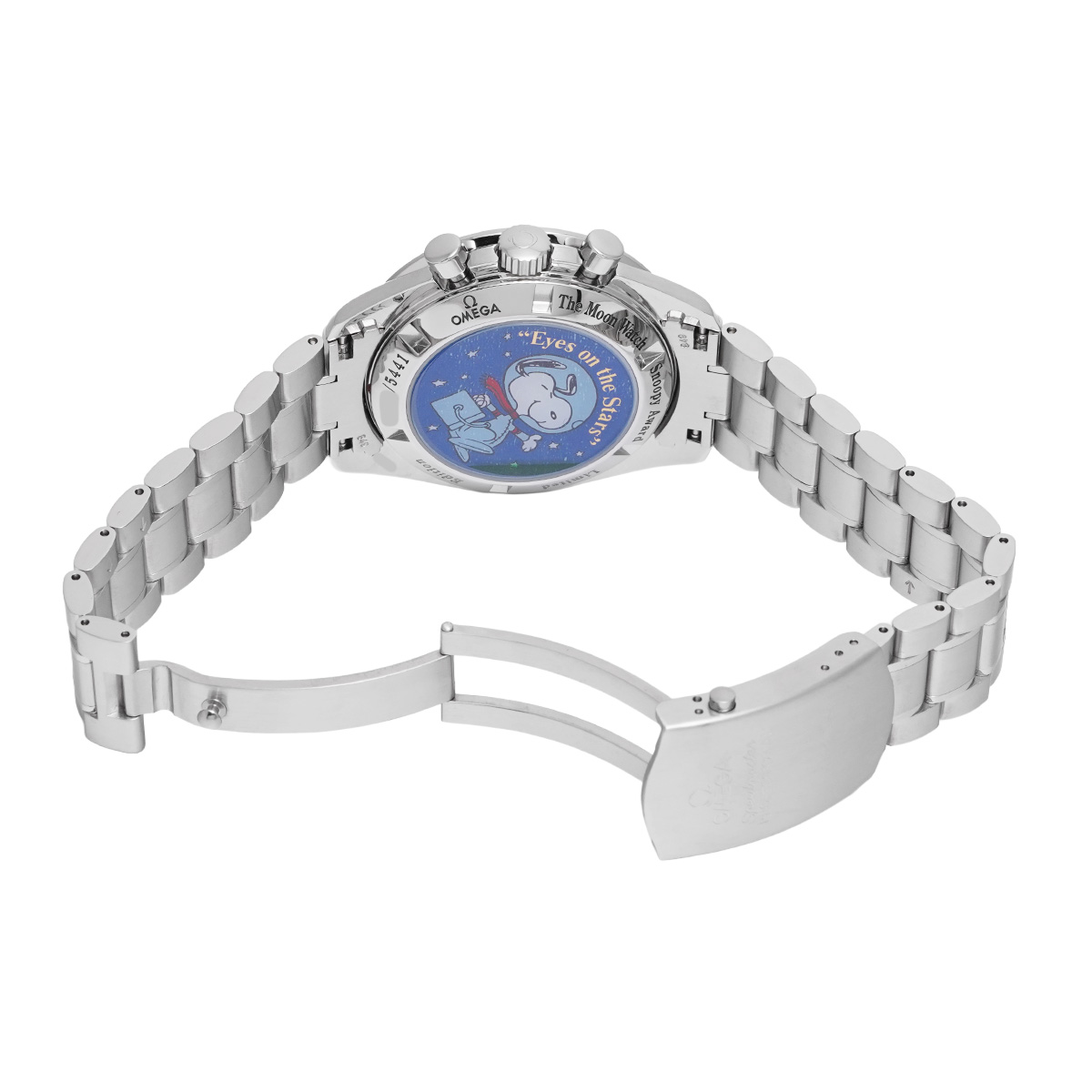コメント「成功した失敗」と形容されるアポロ13号のミッションにおけるスピードマスターの貢献に対して、1970年にNASAがオメガに贈ったスヌーピーアワードを記念して2003年に製作された、5441本の限定モデル。