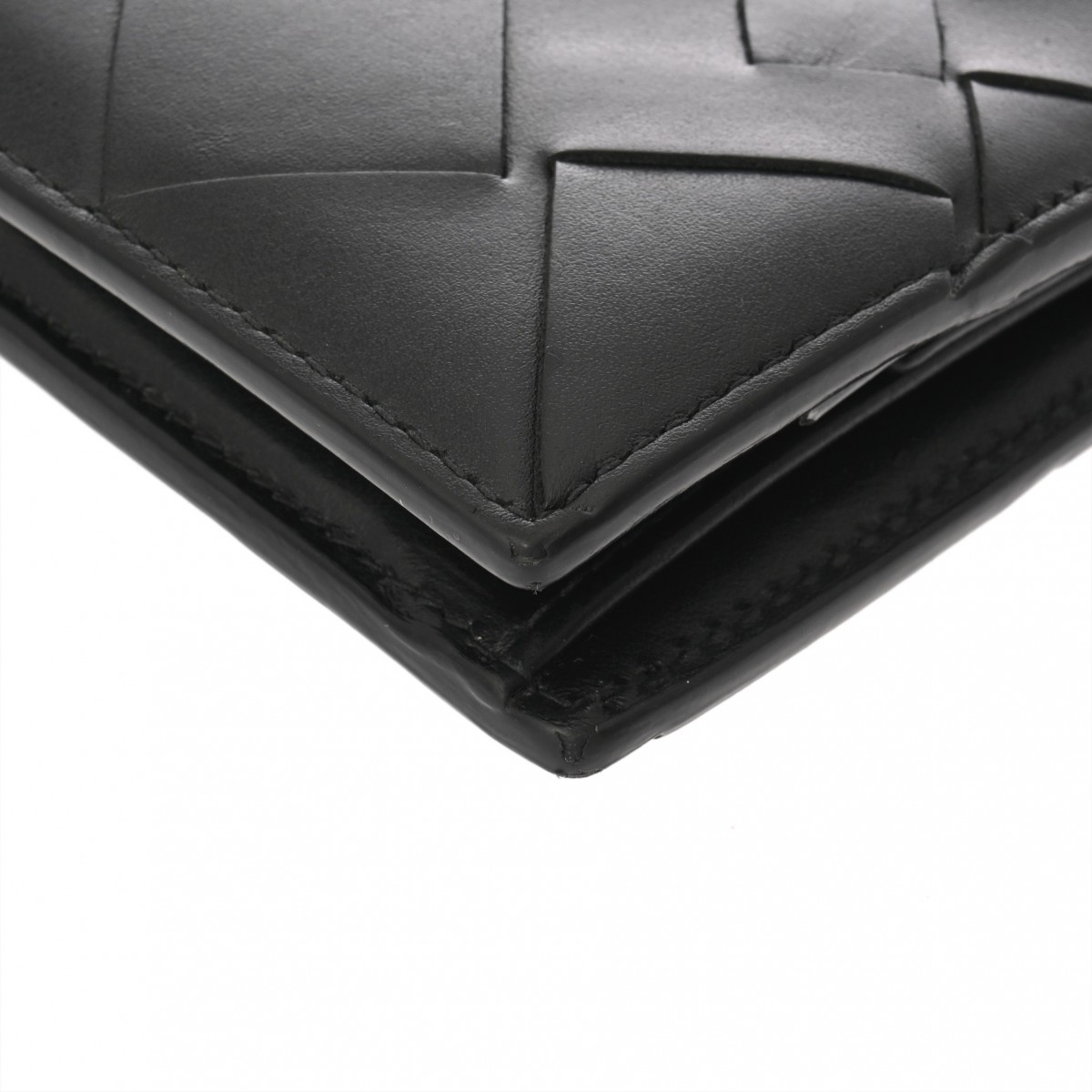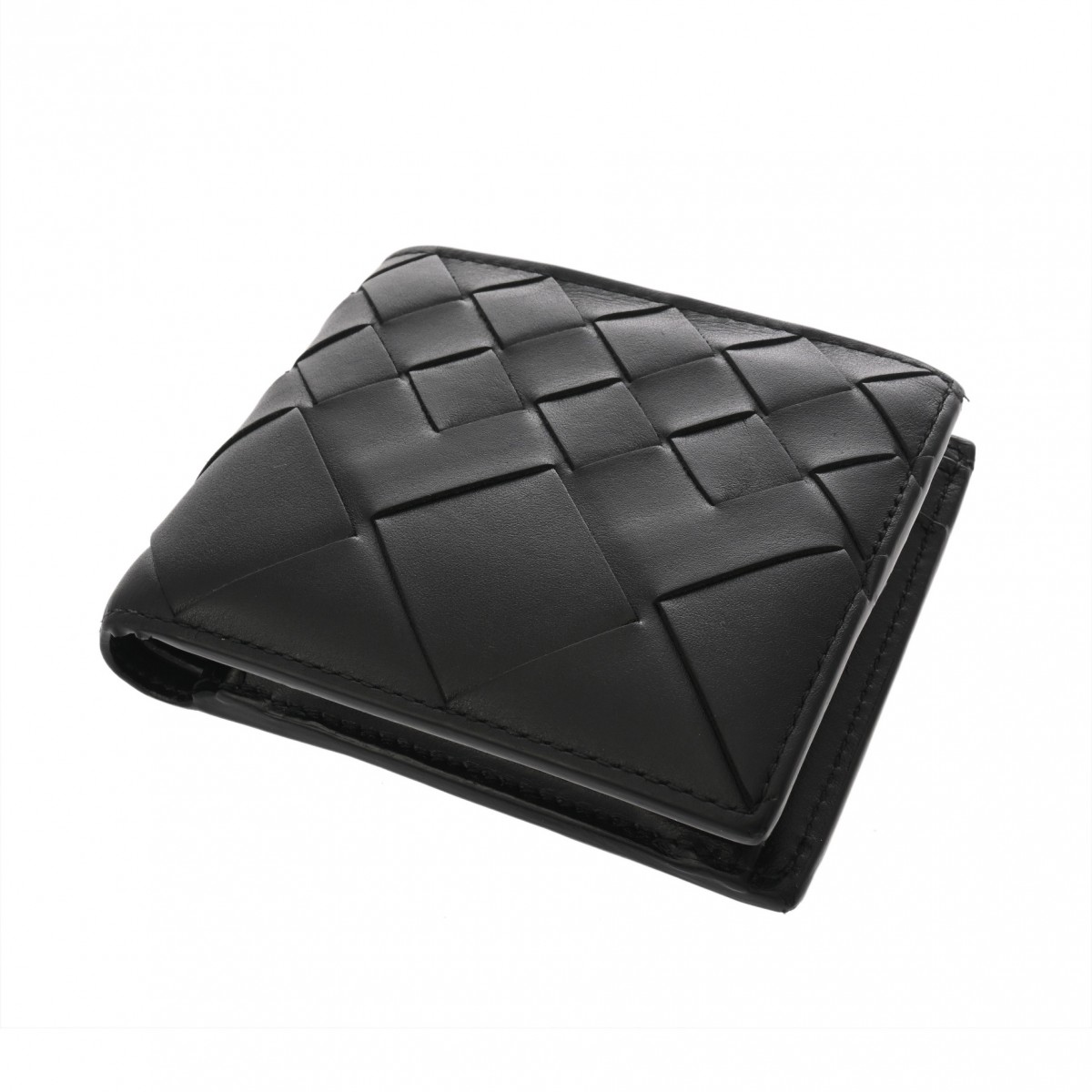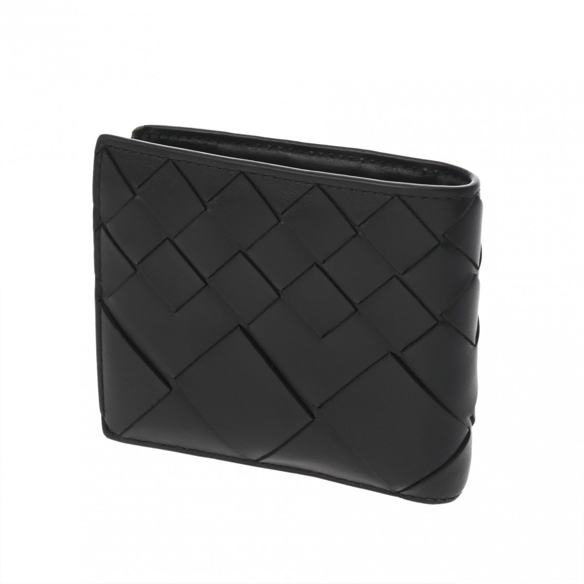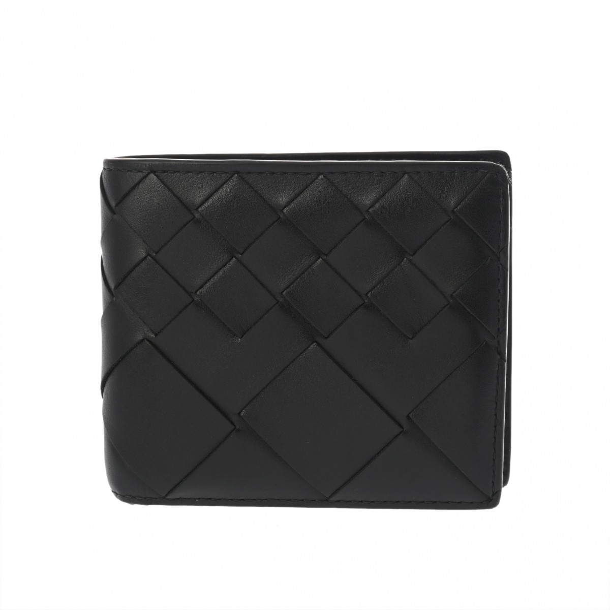 ボッテガ ヴェネタ イントレチャート コインパース付き二つ折りウォレット ブラック 749412 レザー ユニセックス 財布 【中古】【purse】