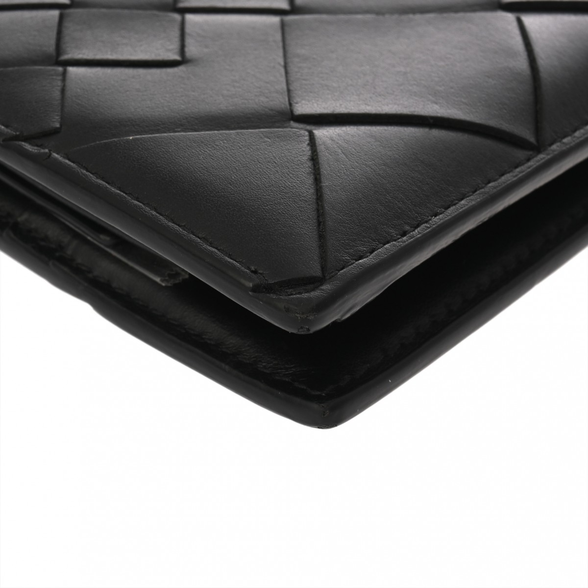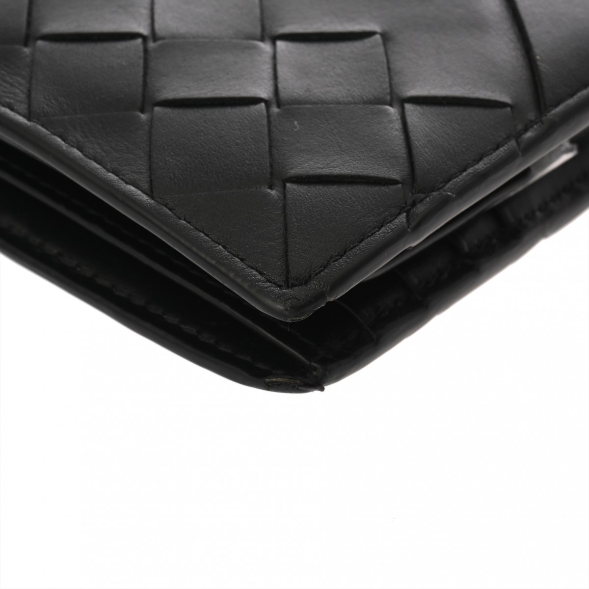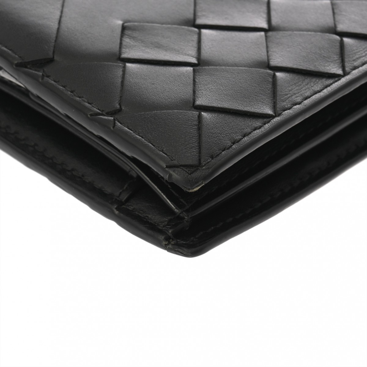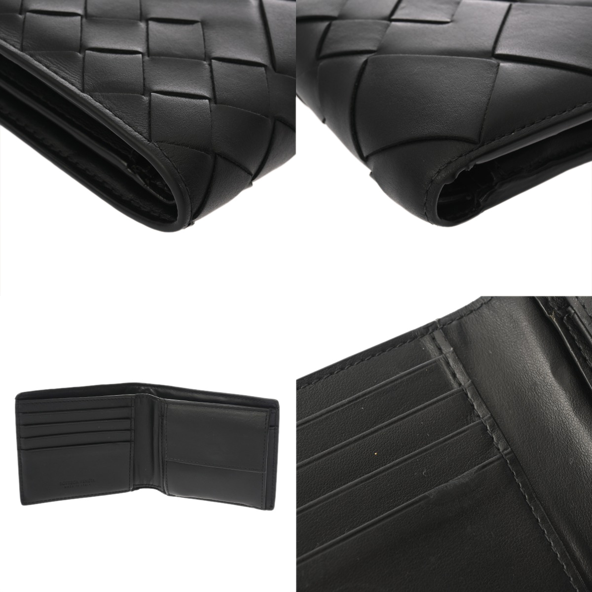 ボッテガ ヴェネタ イントレチャート コインパース付き二つ折りウォレット ブラック 749412 レザー ユニセックス 財布 【中古】【purse】
