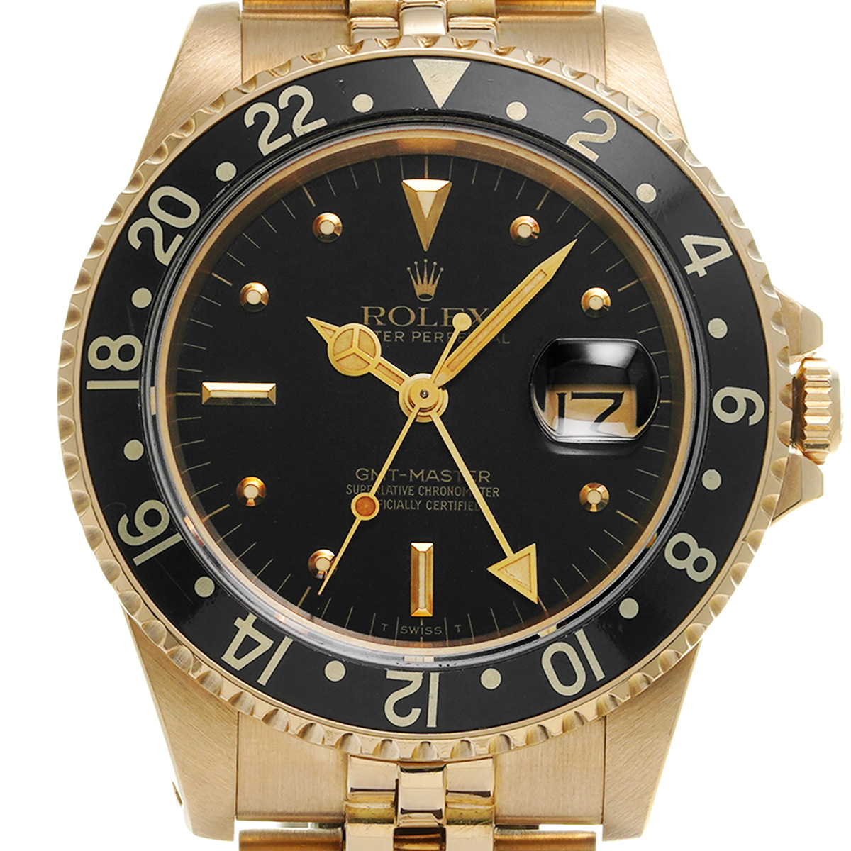 1980年代半ばに製造されたと思われる、ゴールド製のGMTマスターです。