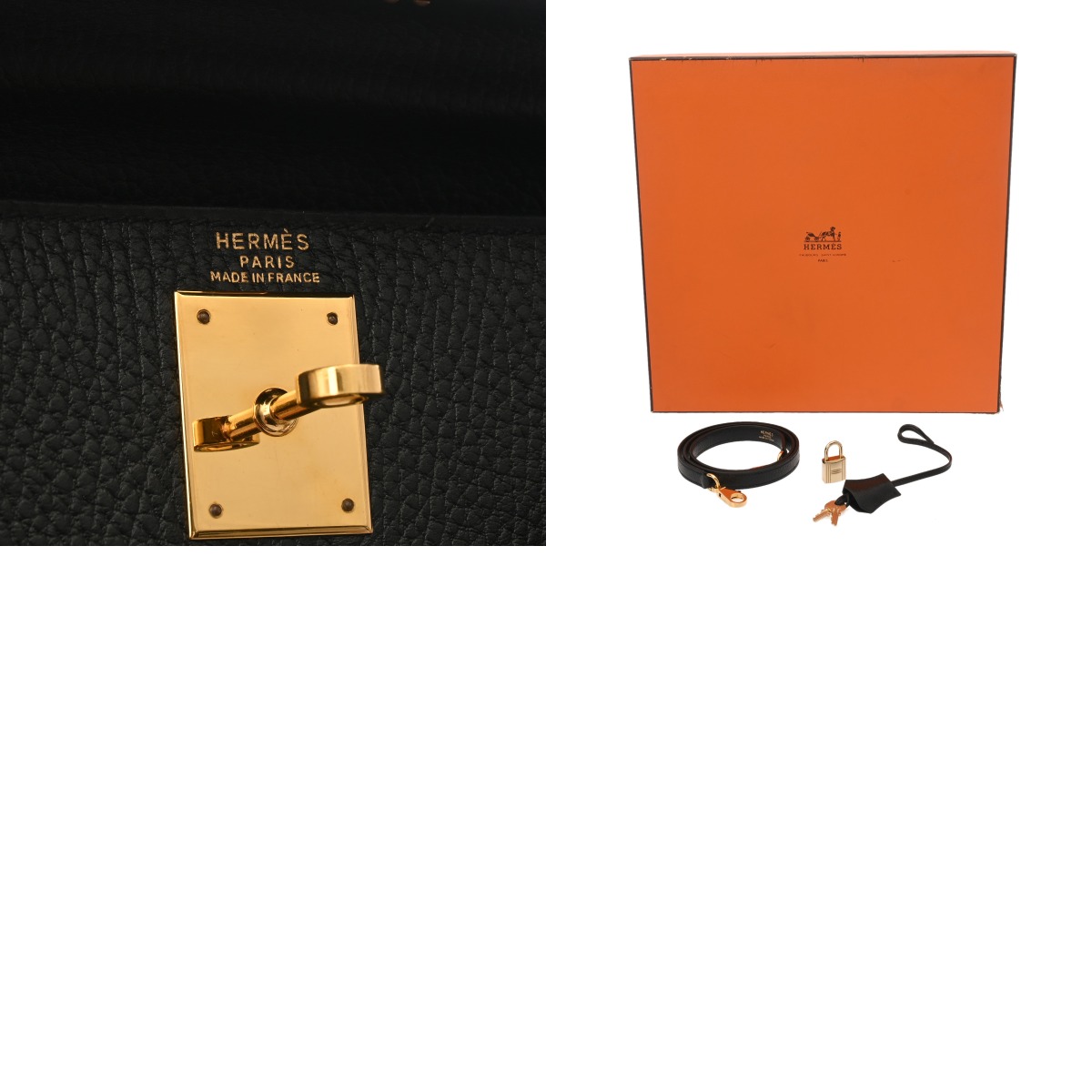 - メーカー箱(ダメージ)/保存袋/ショルダーストラップ/カデナ/クロシェット(鍵付き)/弊社販売証明書