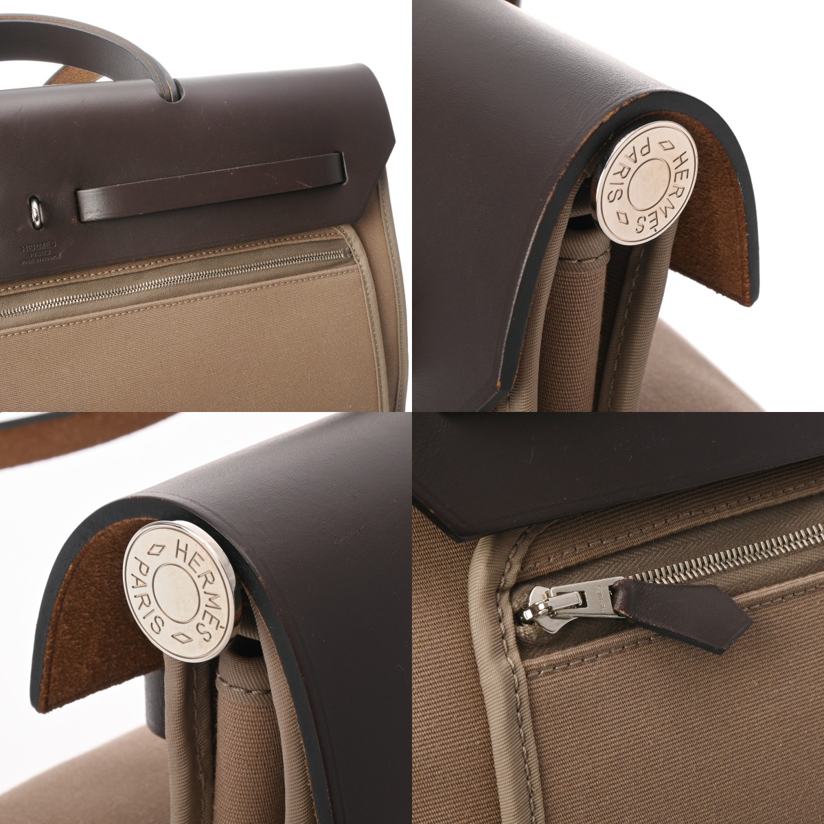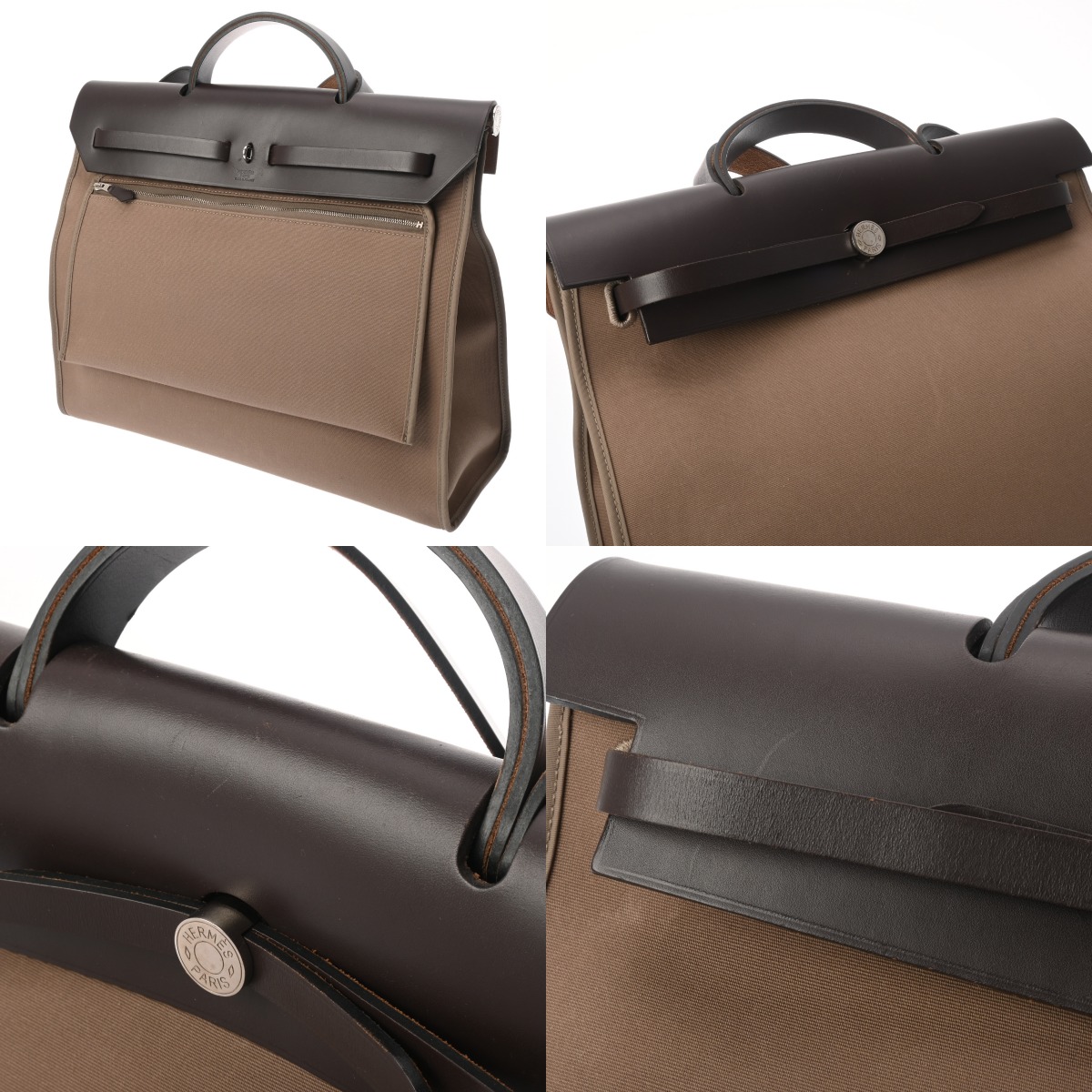 エルメス エールバッグ ジップ MM 2WAY エトゥープ/エベンヌ トワルオフィシエ/ヴァッシュハンター ユニセックス バッグ 【中古】【bag】