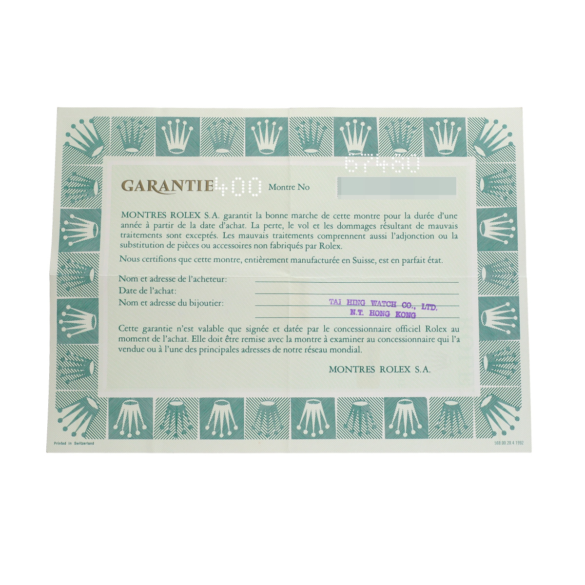 - 時計の当社保証