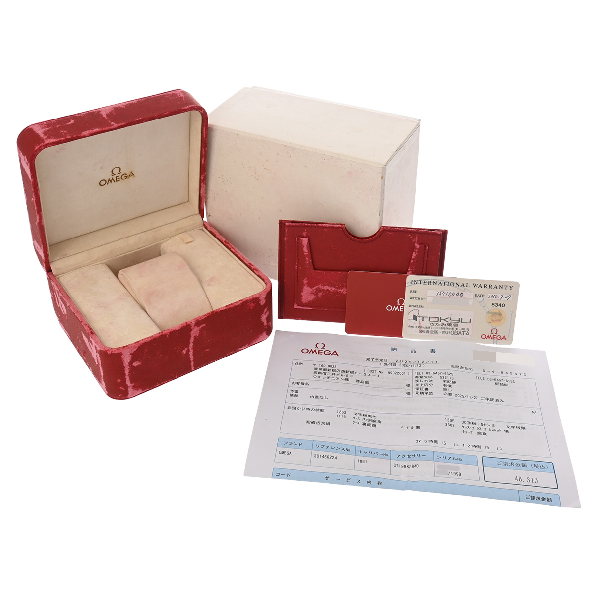- メーカー保証書( 2000年7月国内購入) / メーカー箱(劣化) / サービスカード 修理明細書(2025年12月スペシャルベーシックサービス)