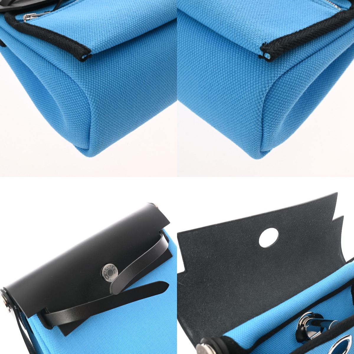 エルメス エールバッグ ジップ ミニ ブルーリヴィエラ/ブラック トワルミリタリー/ヴァッシュハンター レディース バッグ 【未使用】【bag】
