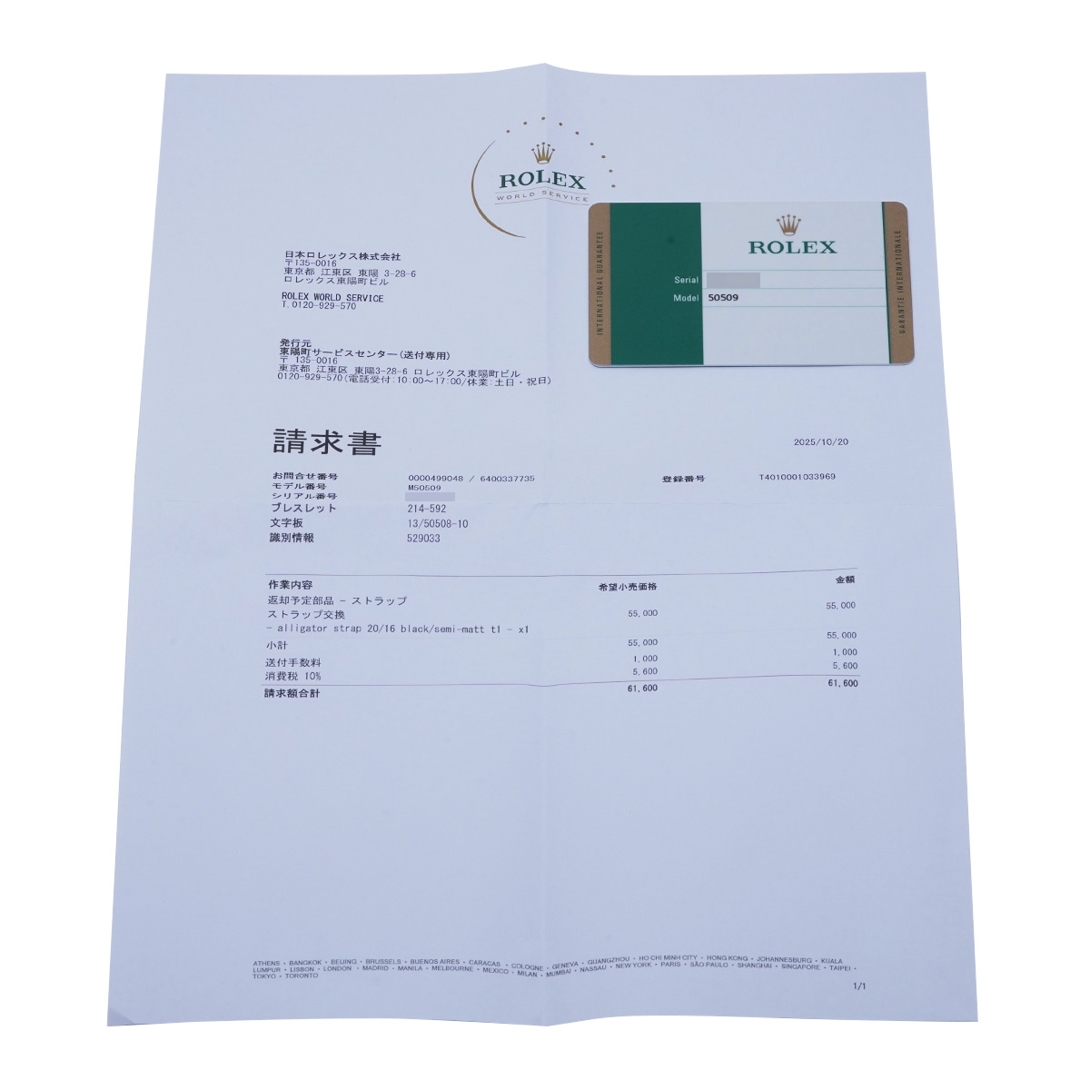 - メーカー保証書( 2017年8月海外購入) / メーカー箱/冊子 / 修理明細書(2025年10月ストラップ交換)
