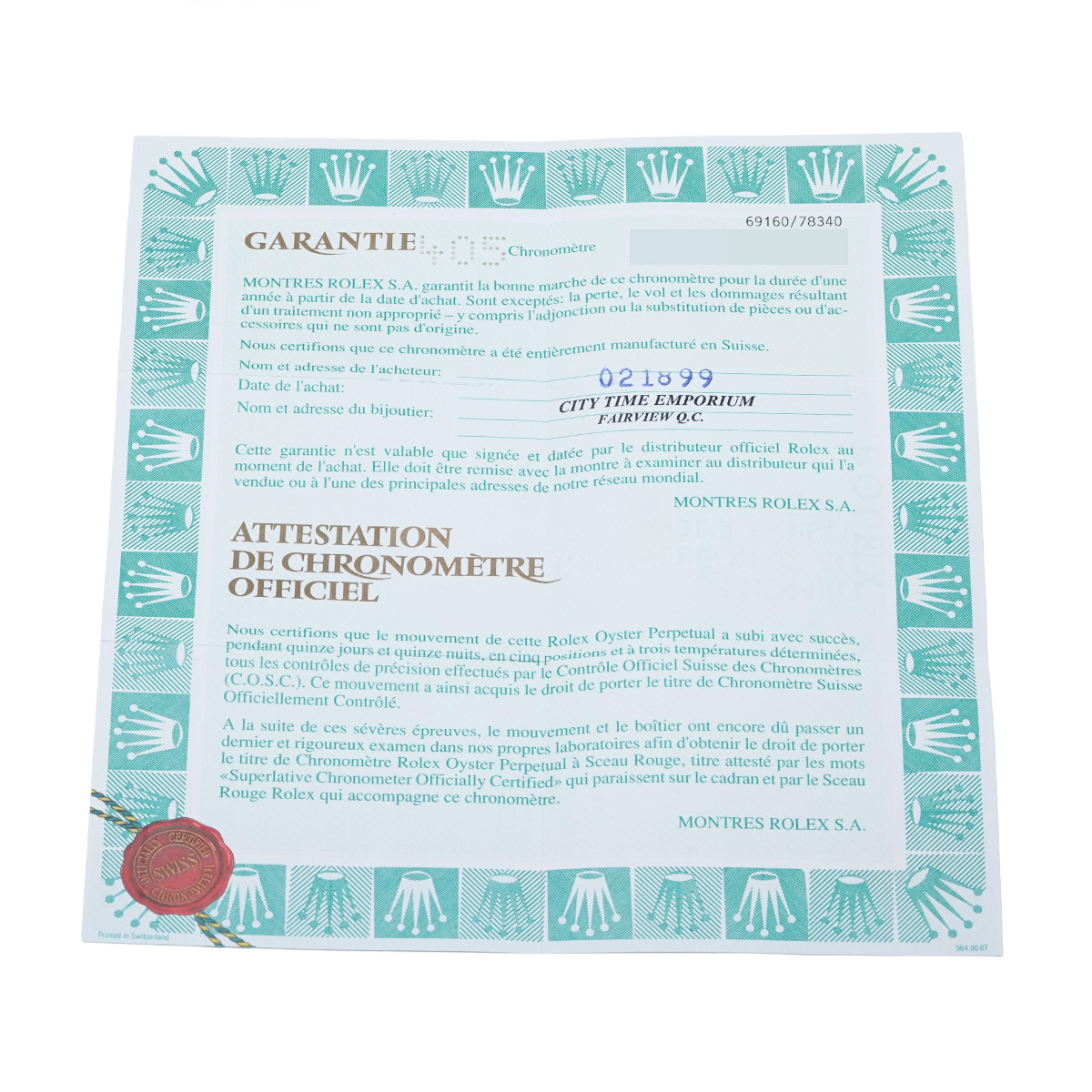 - 時計の当社保証