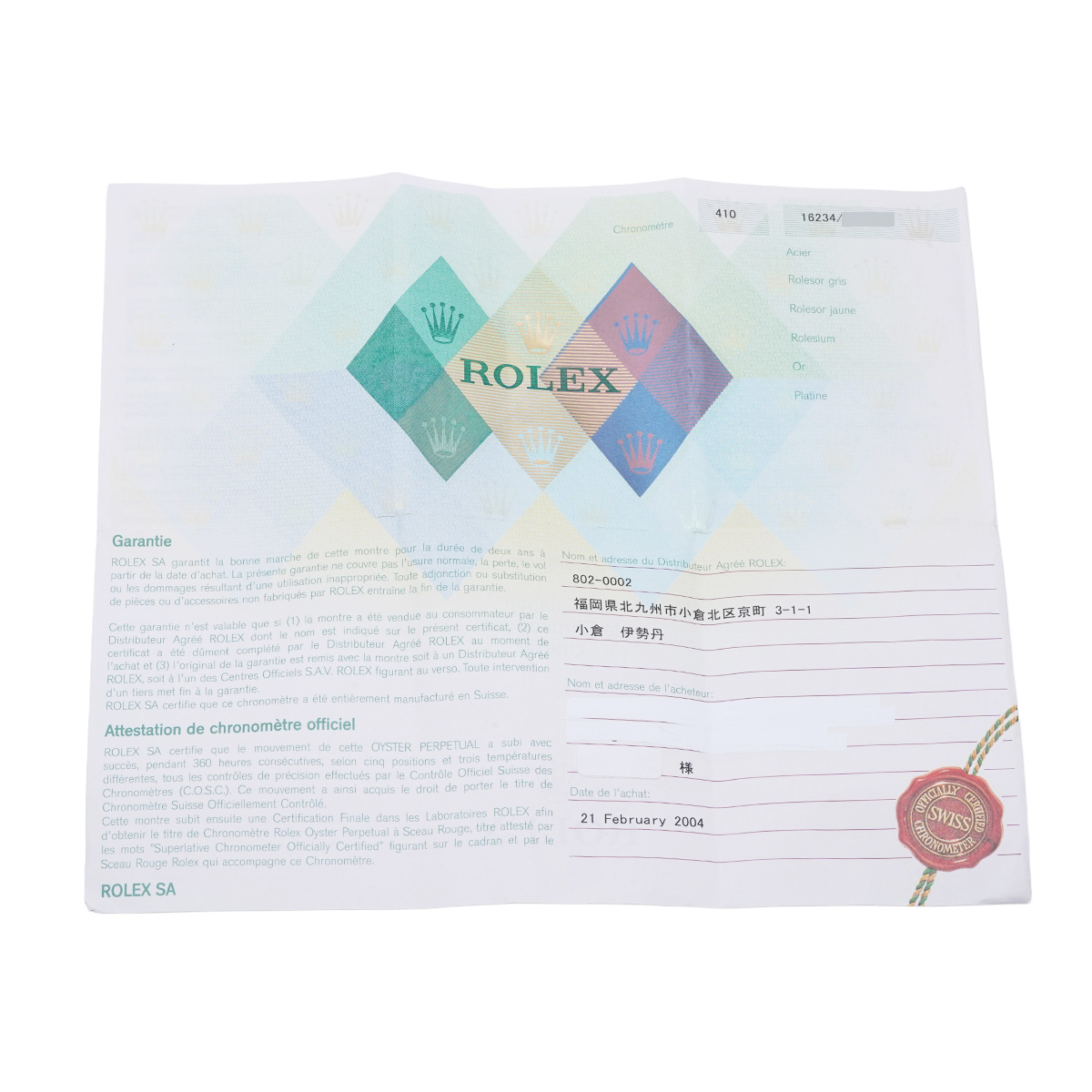 - メーカー保証書( 2004年2月国内購入) / メーカー箱(ダメージ)/冊子