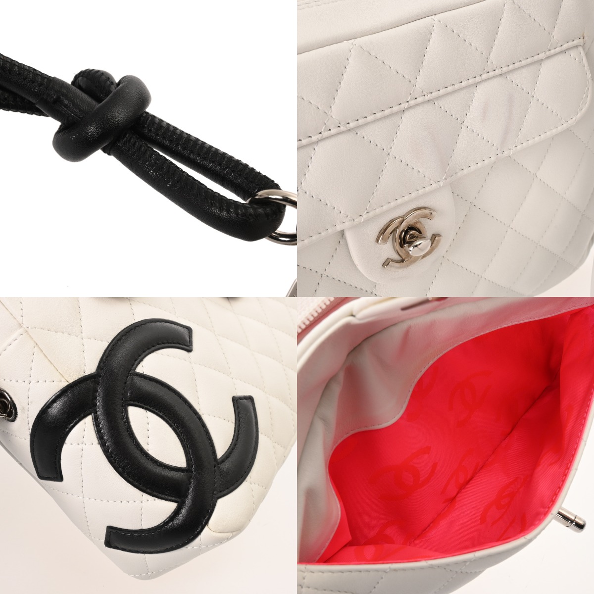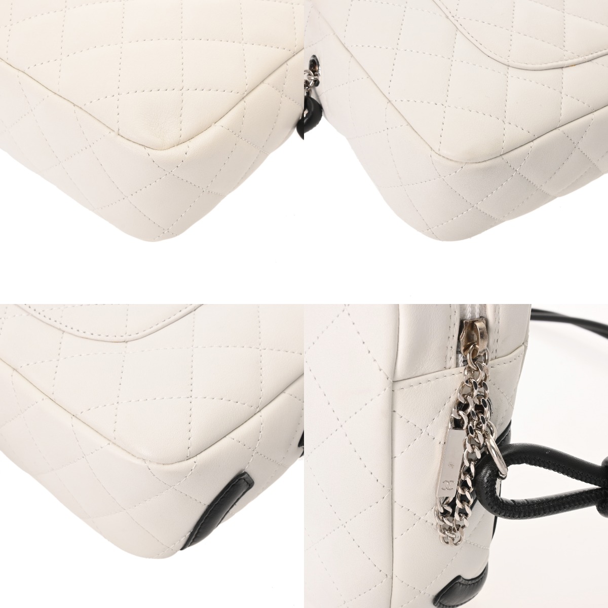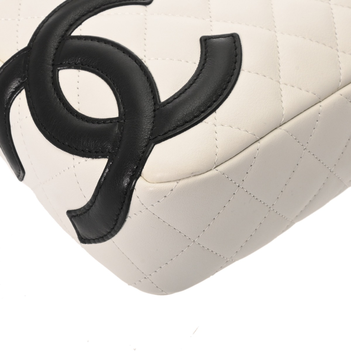 シャネル カンボン ココマーク ホワイト/ブラック カーフスキン レディース バッグ 【中古】【bag】