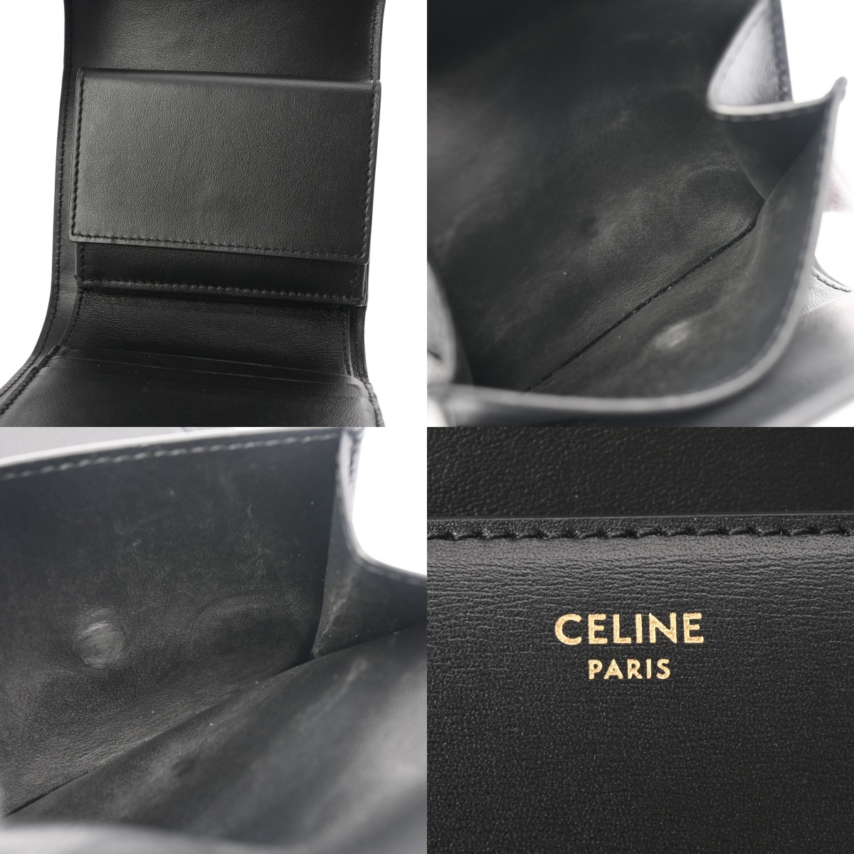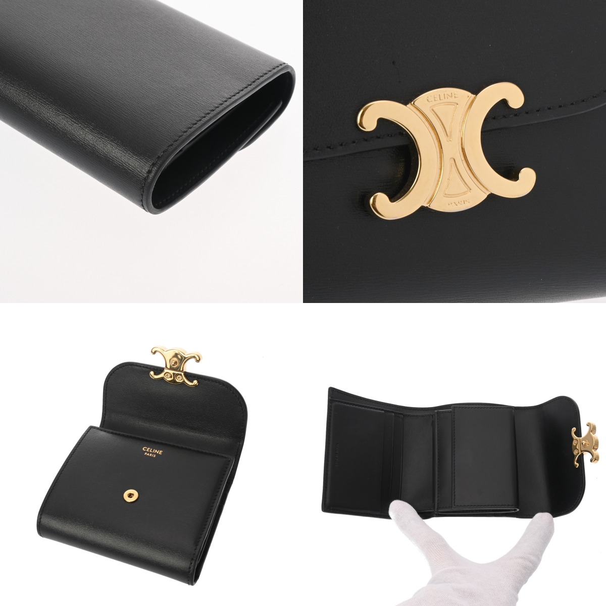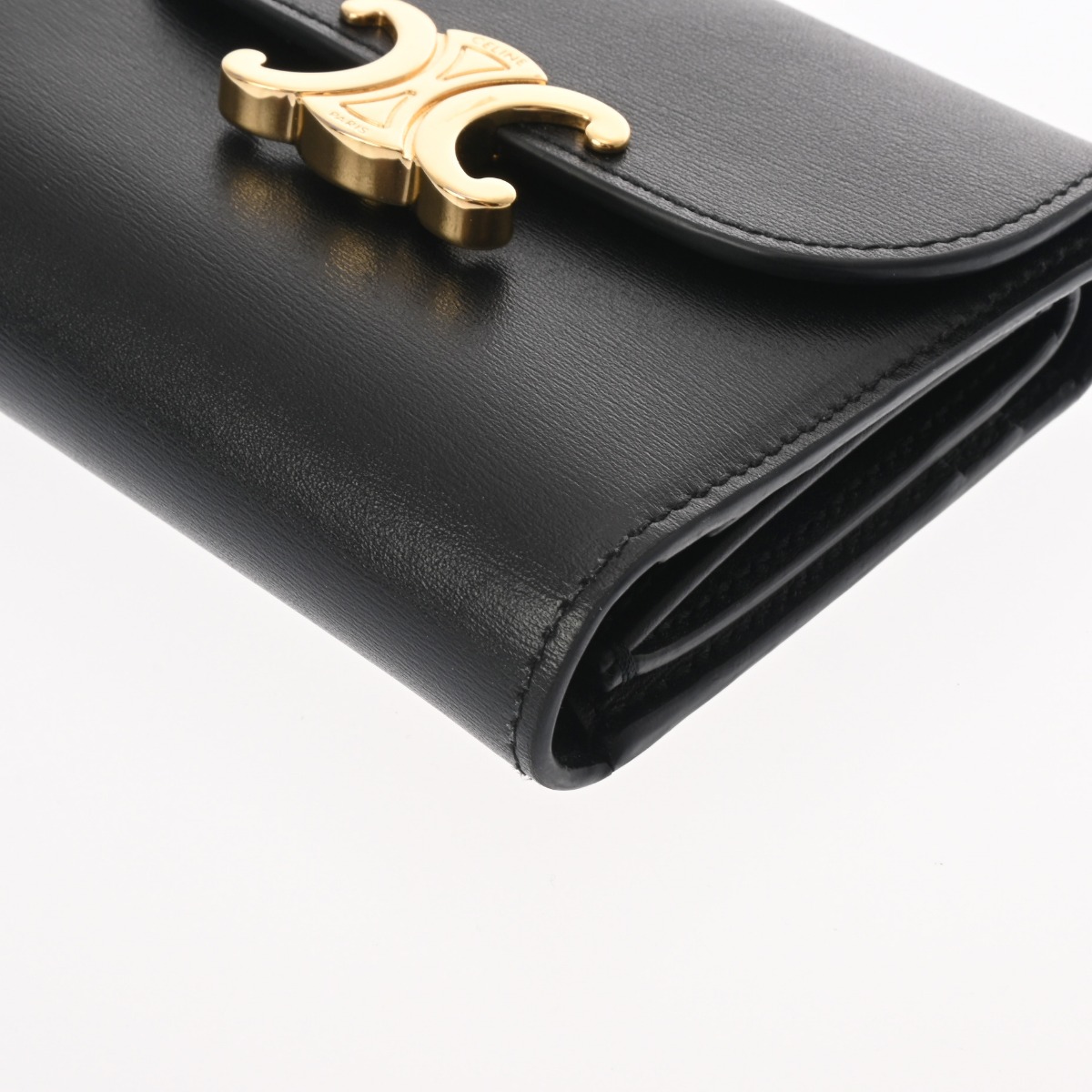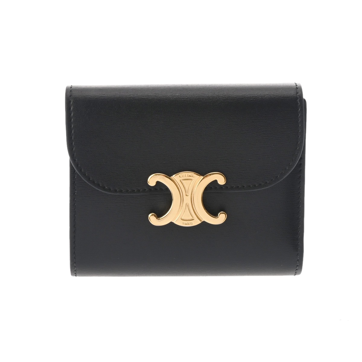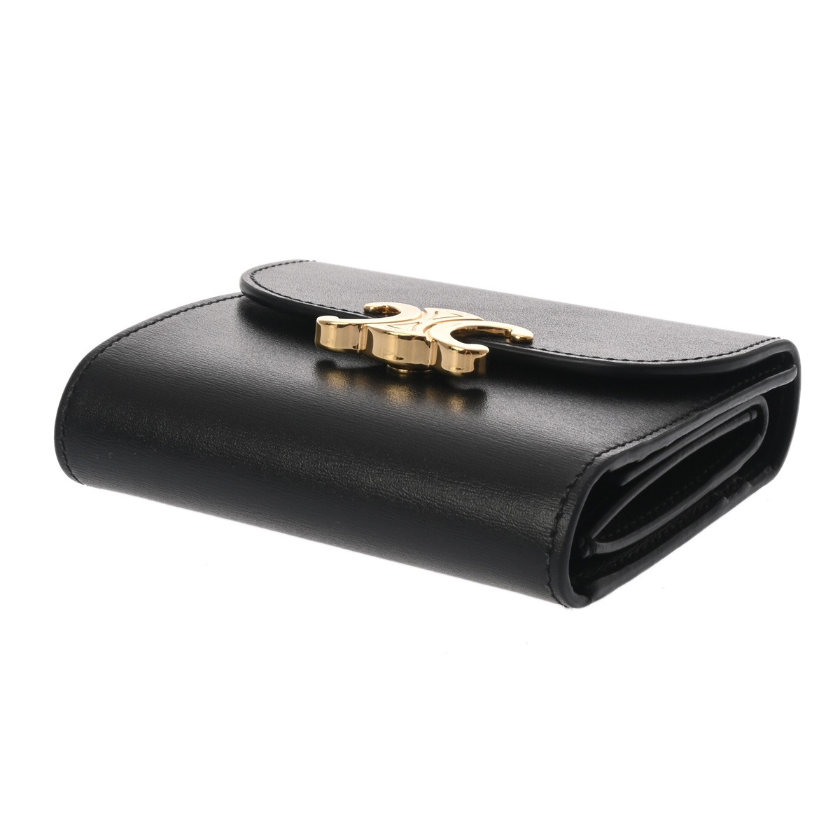 セリーヌ スモールウォレット トリオンフ ブラック 10D783DPV.38NO シャイニーカーフ レディース 財布 【中古】【purse】