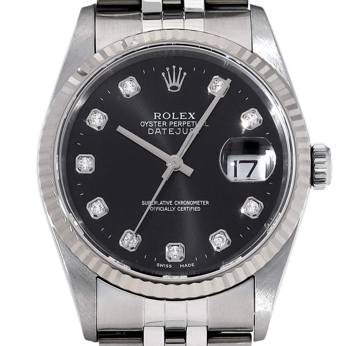 ロレックス デイトジャスト 16234G ブラック/ダイヤモンド メンズ 時計 【中古】【wristwatch】