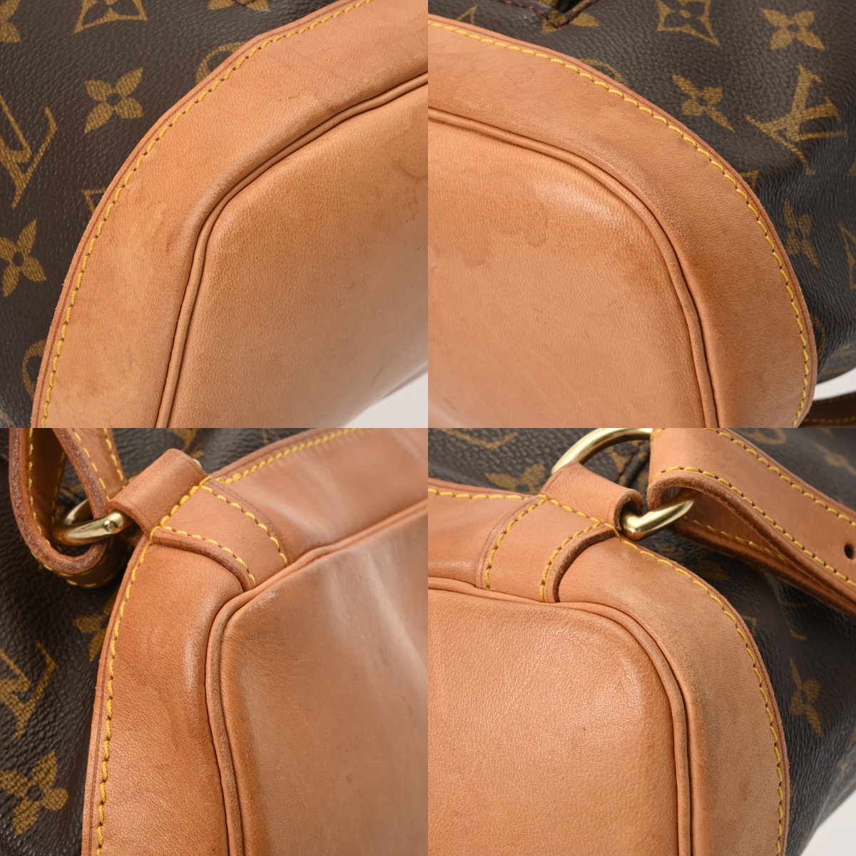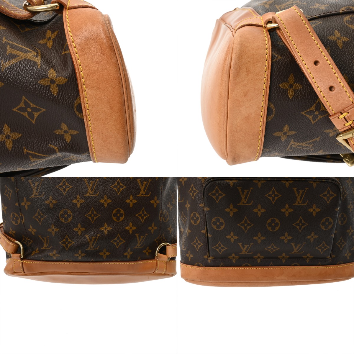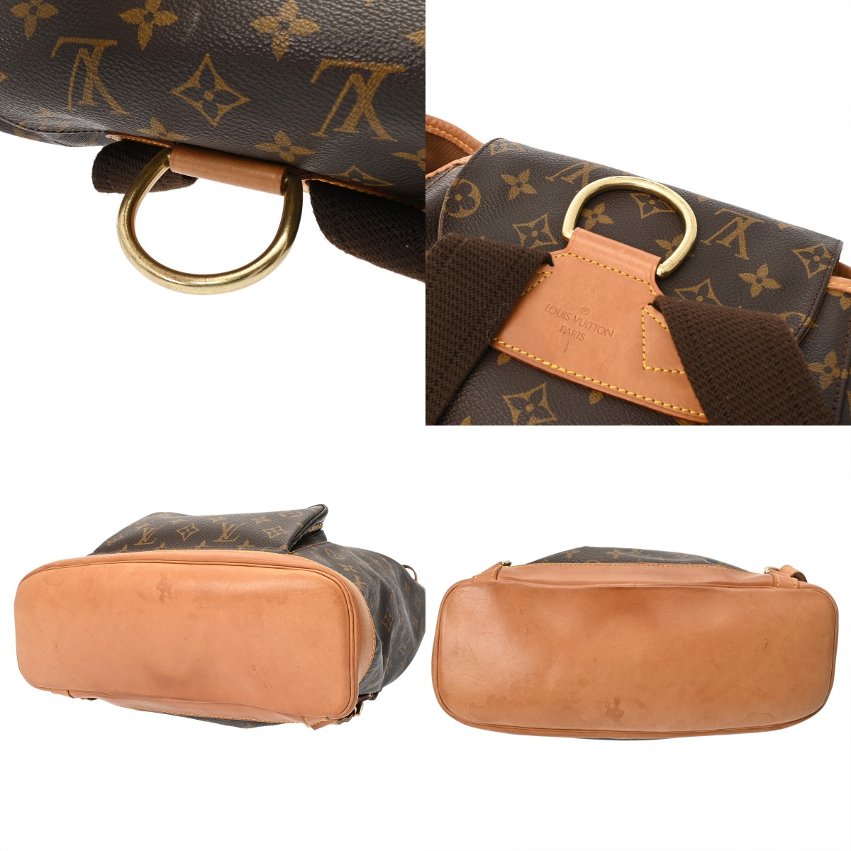- つぶれ、型崩れ、薄汚れ、スレやシワ、ショルダーやベルトにクセ、ヌメ革部分にヤケやシミ、シワ、金具にくすみやスレキズなど使用感がございます。