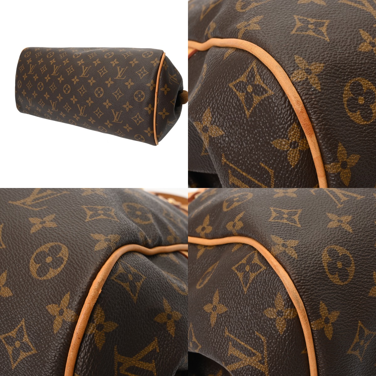 - つぶれ、たたみクセ、テカリ、スレやシワ、薄汚れ、ヌメ革にヤケやシミ、ショルダーやプルにクセやシワ、コバに若干毛羽立ち、金具に変色や色ハゲ、スリキズなど使用感がございます。