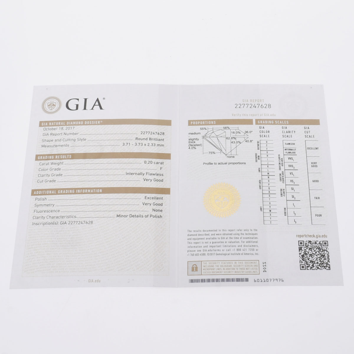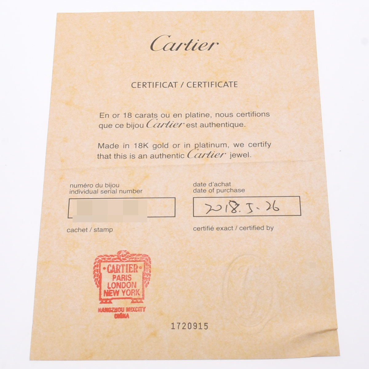 - メーカー保証書( 2018年5月海外購入) / 内箱 / GIA鑑定書