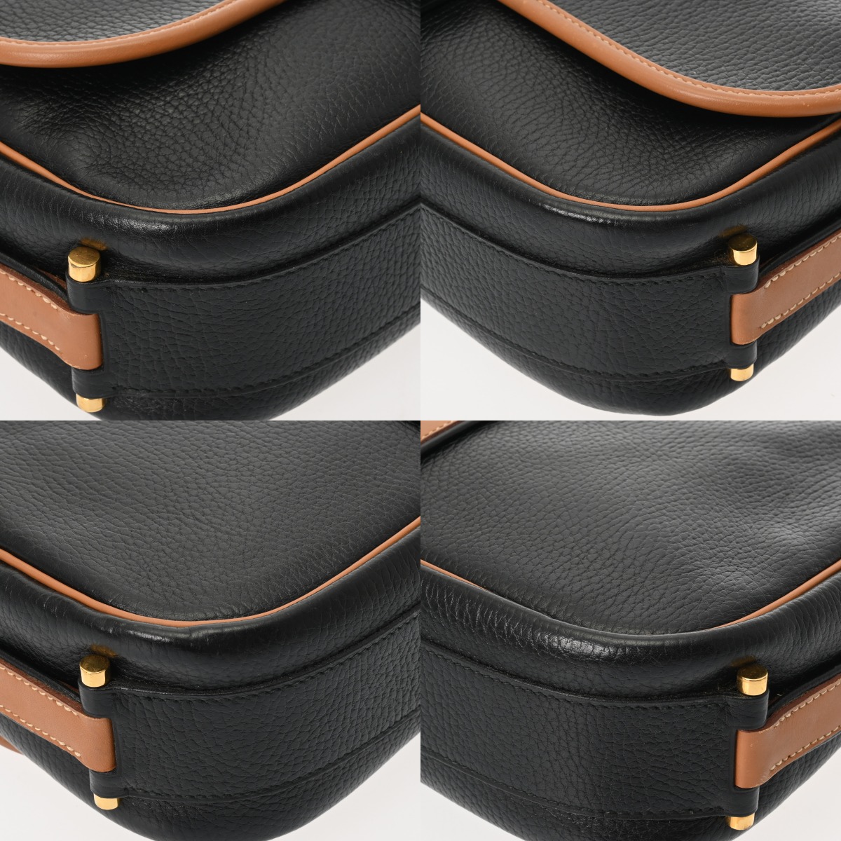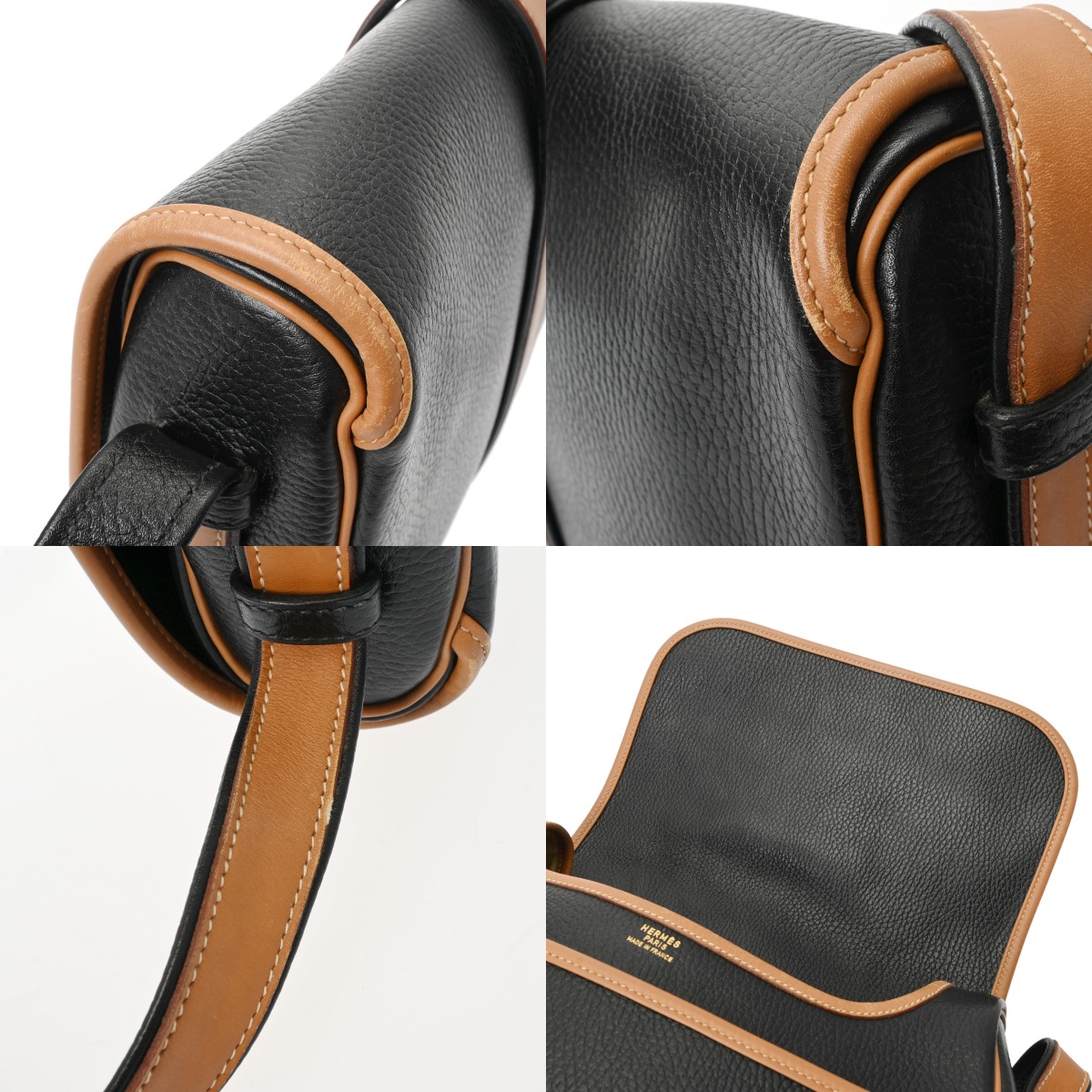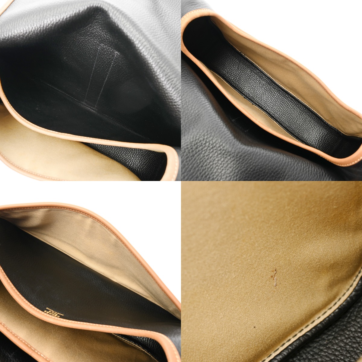 - フラップ裏含めスレやシワ、毛羽立ち、薄汚れ、金具にスリキズなど少々使用感がございます。