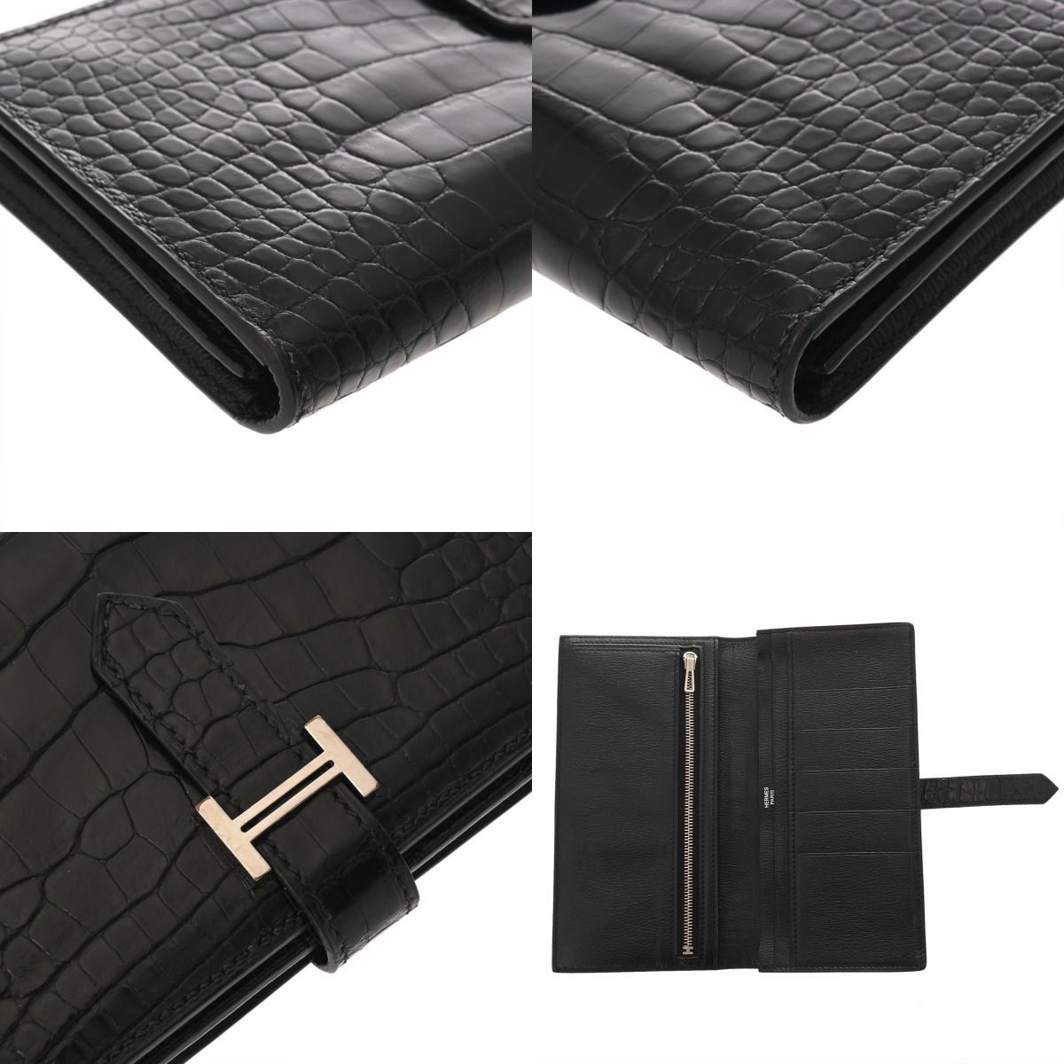 エルメス ベアンスフレ ブラック アリゲーターリセ ユニセックス 財布 【中古】【purse】