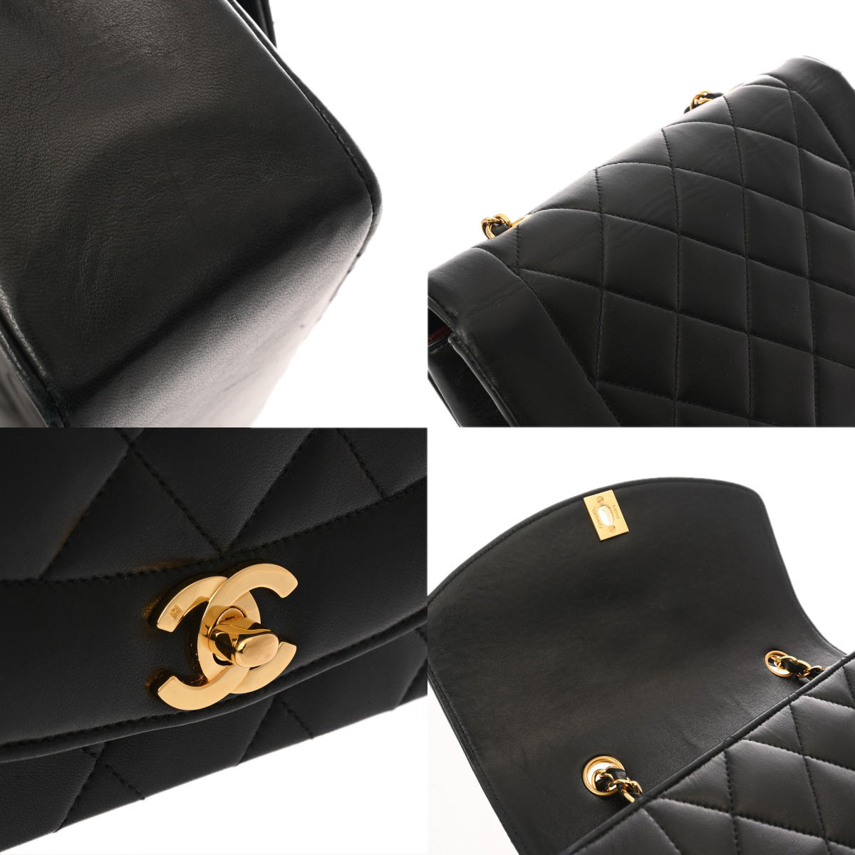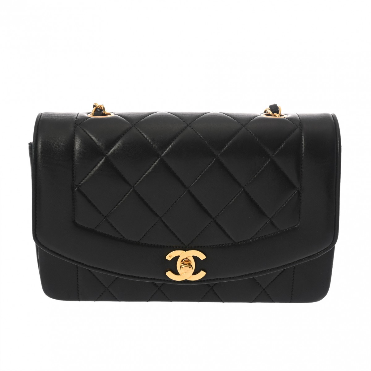 シャネル マトラッセ ダイアナ フラップ チェーンショルダー 23 ブラック A01164 ラムスキン レディース バッグ 【中古】【bag】
