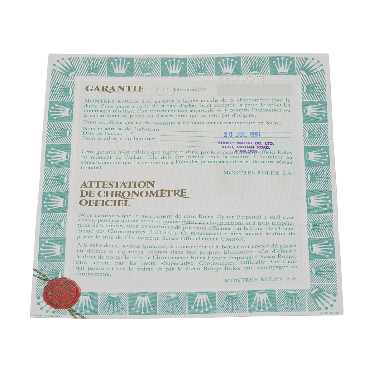 - メーカー保証書( 1991年7月海外購入)