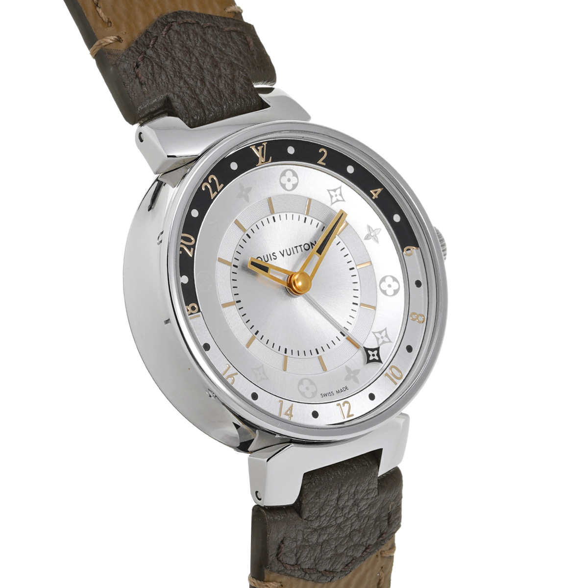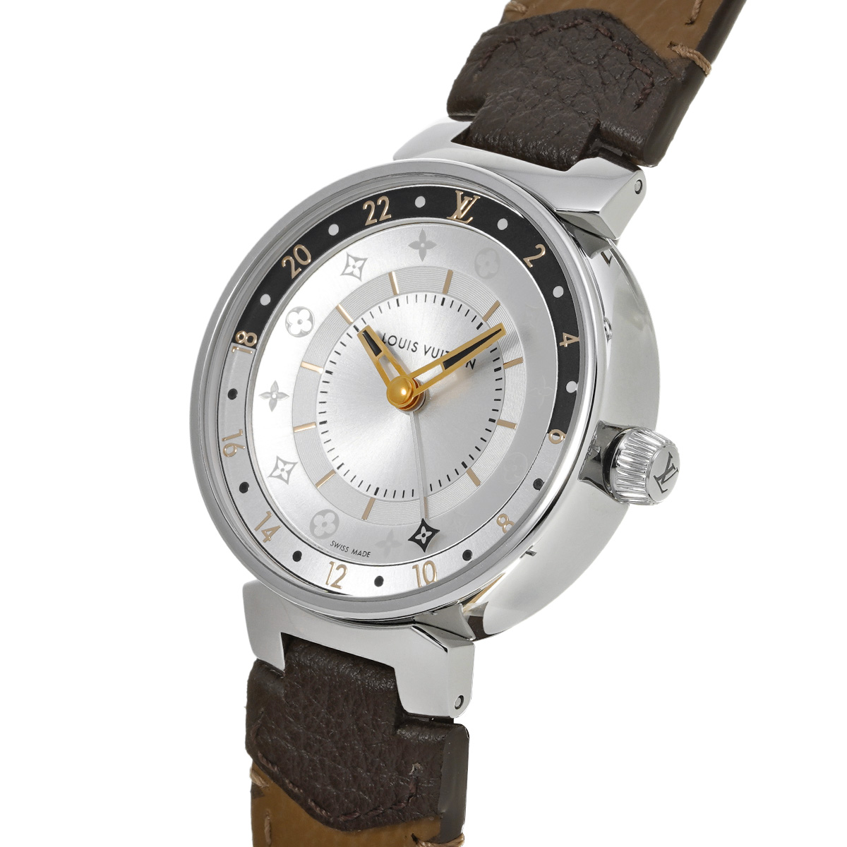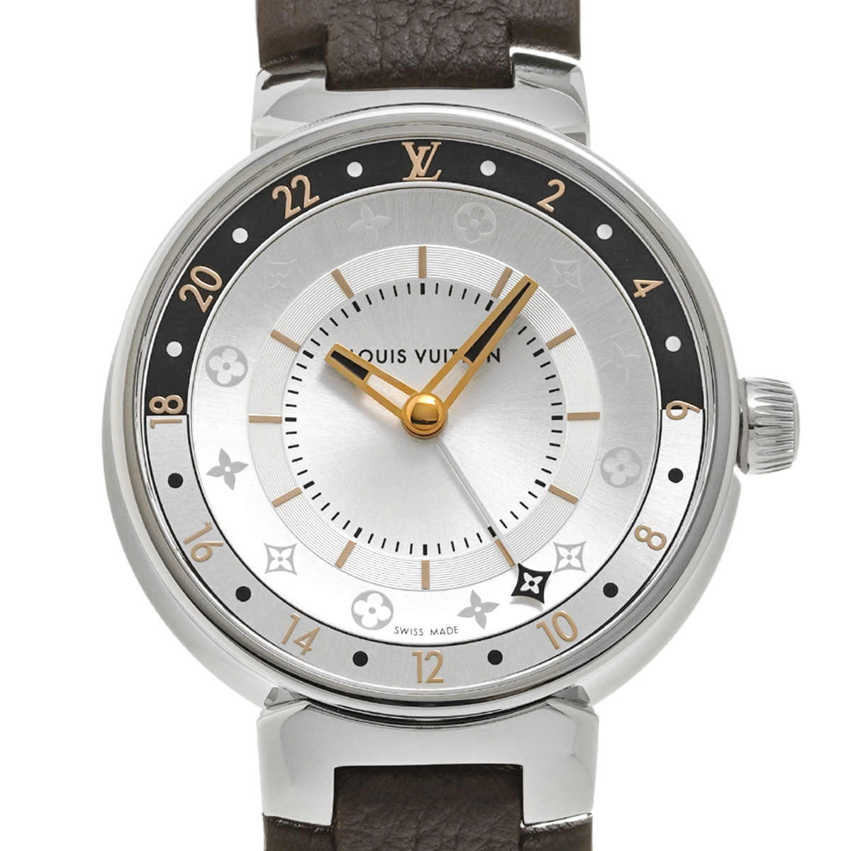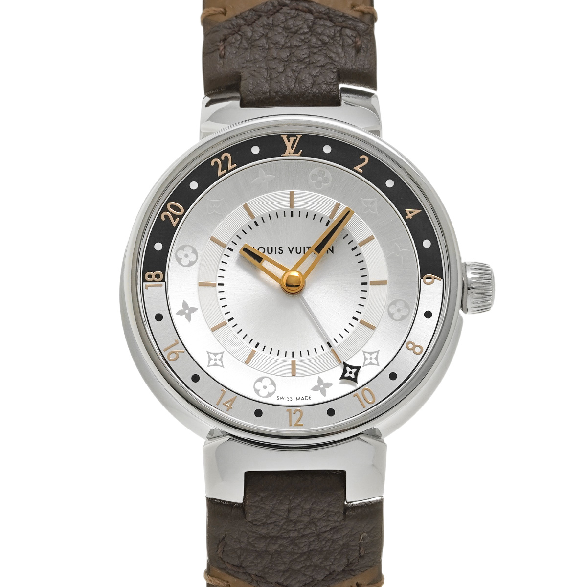 ルイ ヴィトン タンブール ムーンデュアルタイム QA104Z シルバー/ブラック レディース 時計 【中古】【wristwatch】