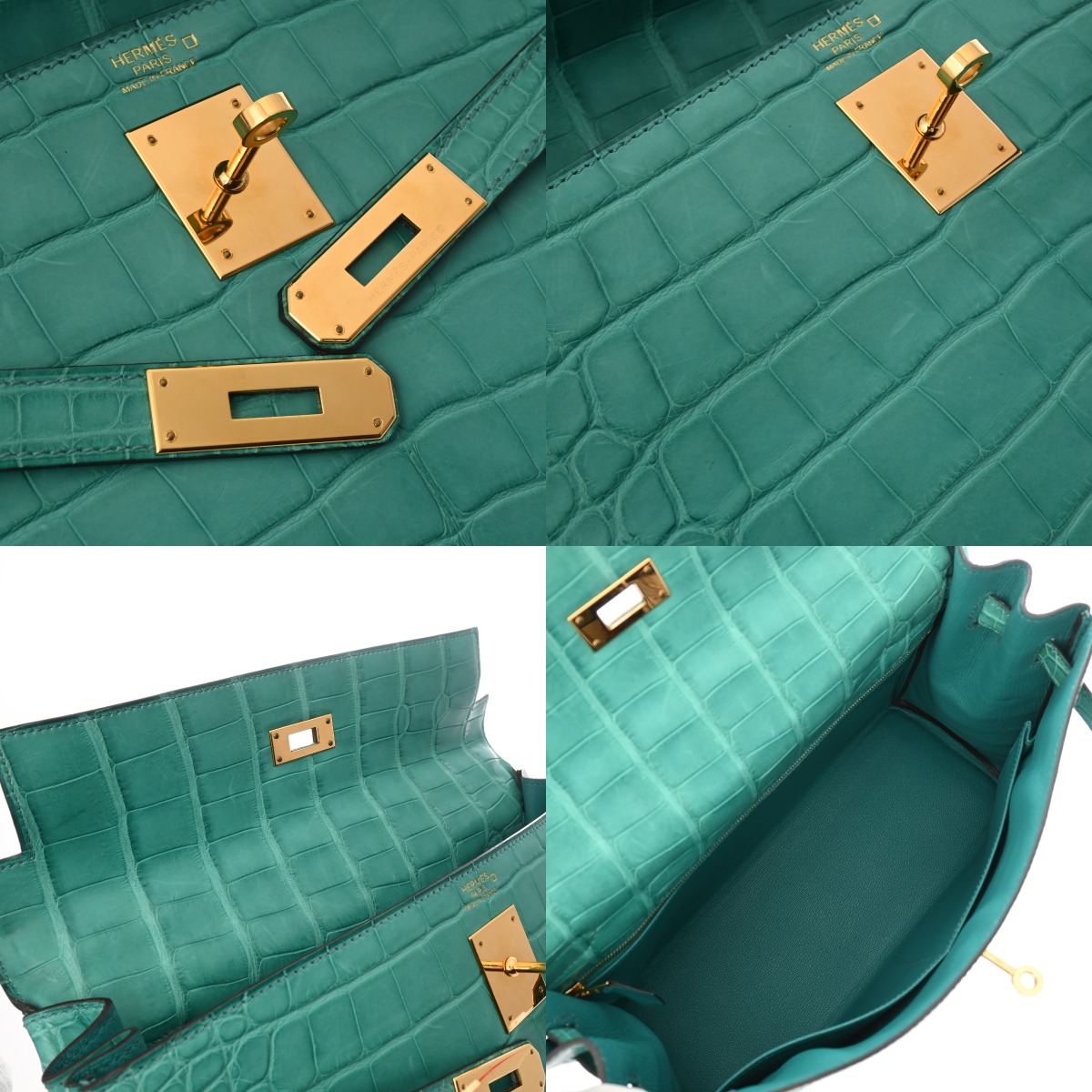 エルメス ケリー 32 内縫い ブルーパオン アリゲーターマット レディース バッグ 【中古】【bag】