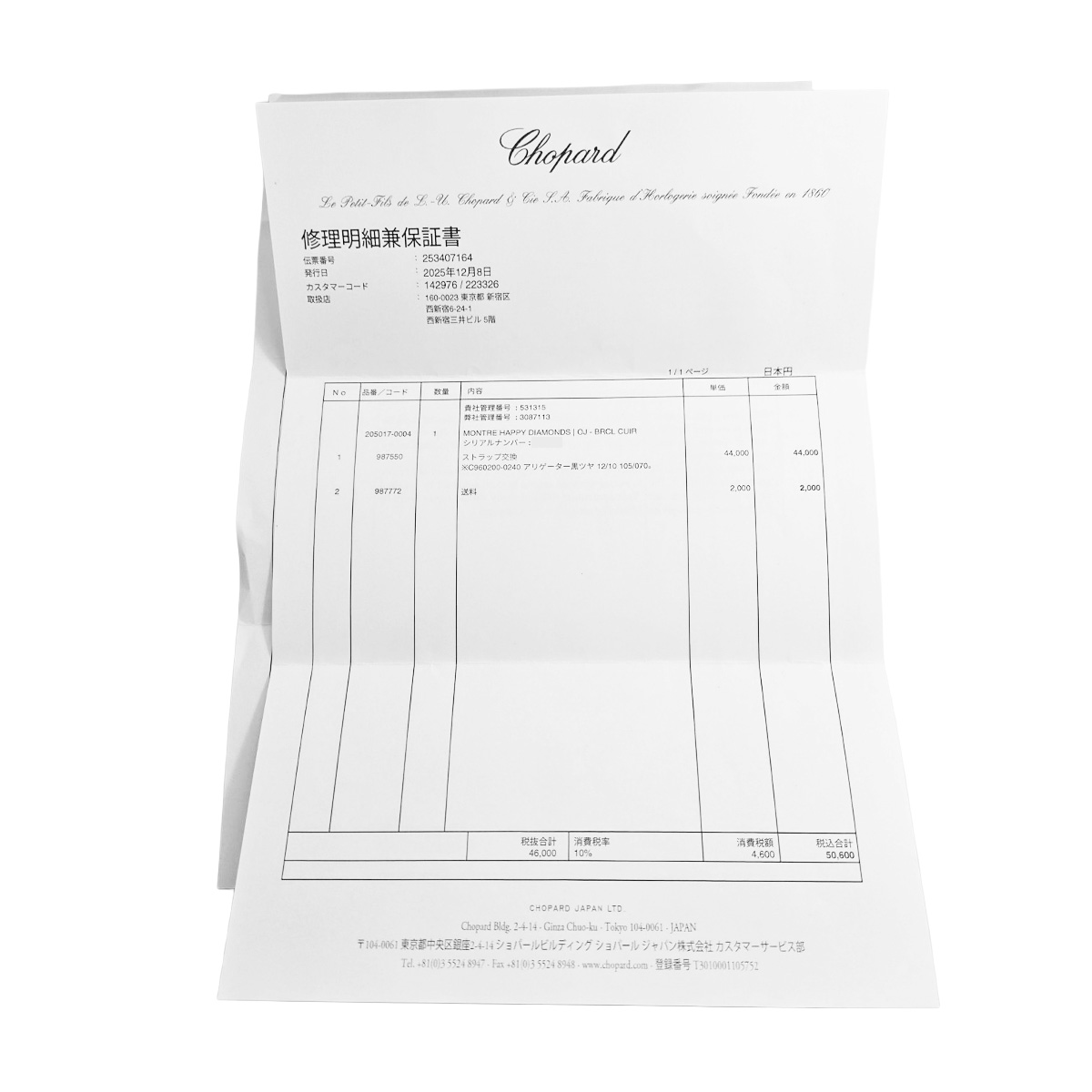 - 納品書兼請求書/修理明細兼保証書(2025年12月ストラップ交換)