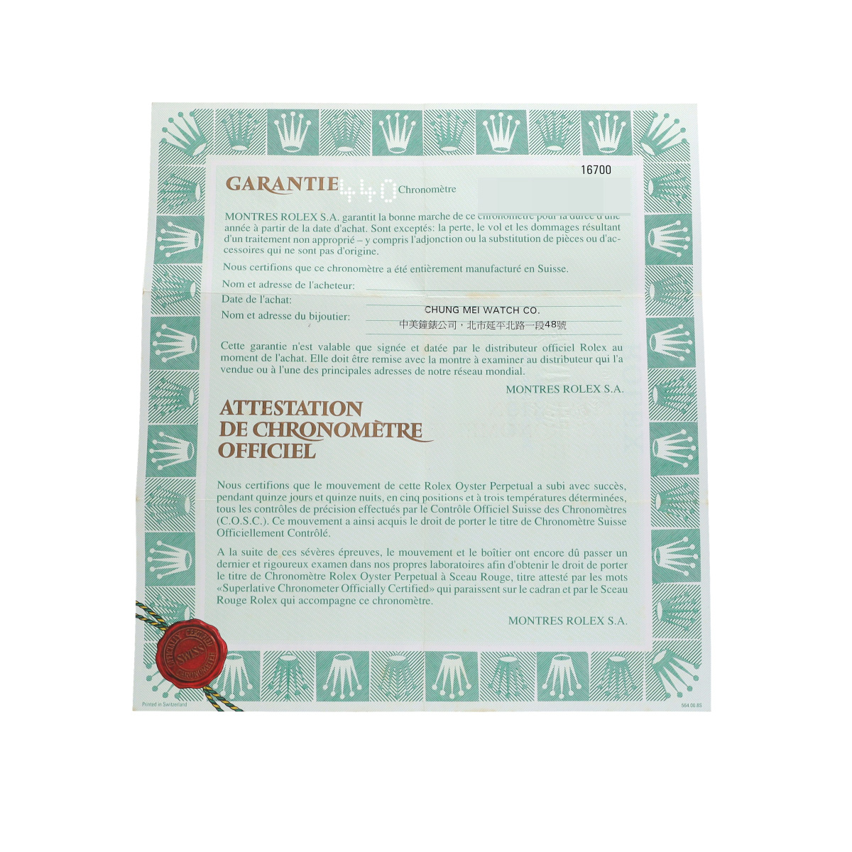 2000年にこのRef.16700は製造が中止されますが、これをもってGMTマスターは、短針の単独修正機能を追加されたGMTマスターII のみの展開になりました。 -