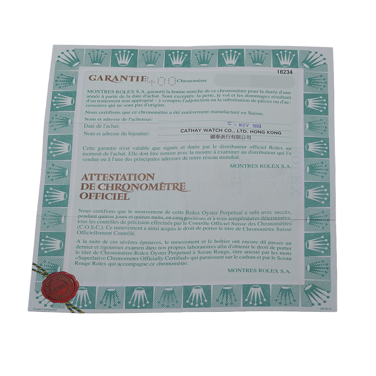 - メーカー保証書( 1999年11月海外購入) / メーカー箱/冊子/タグ