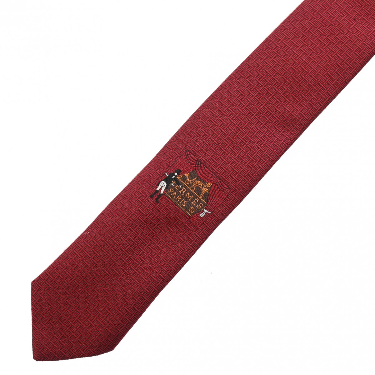 エルメス シルクタイ 7cm スプレッドH ボルドー シルク100% メンズ 【中古】【other】